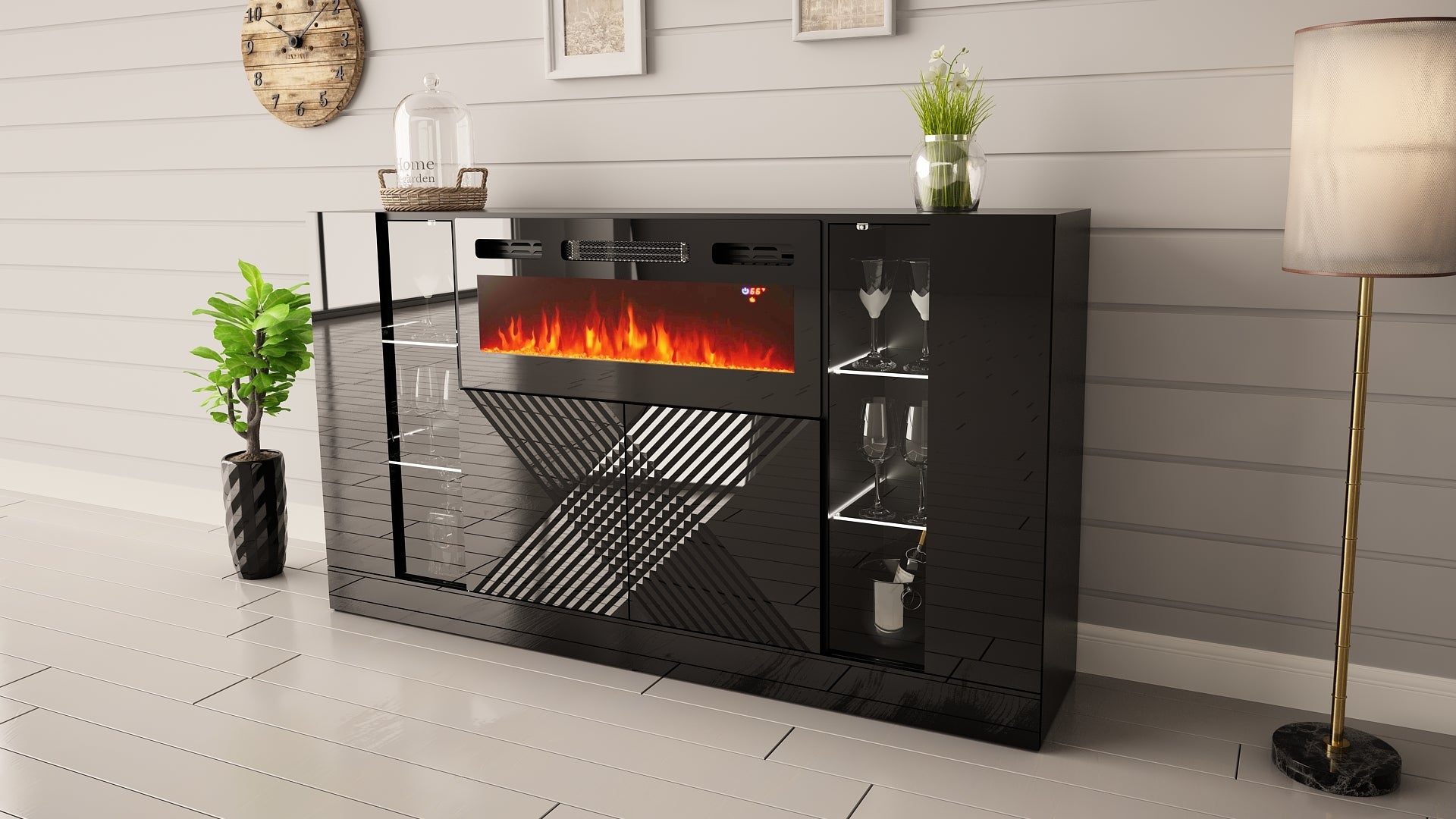 Kumode ar elektrisko kamīnu Dalika 160/90/35 cm melns