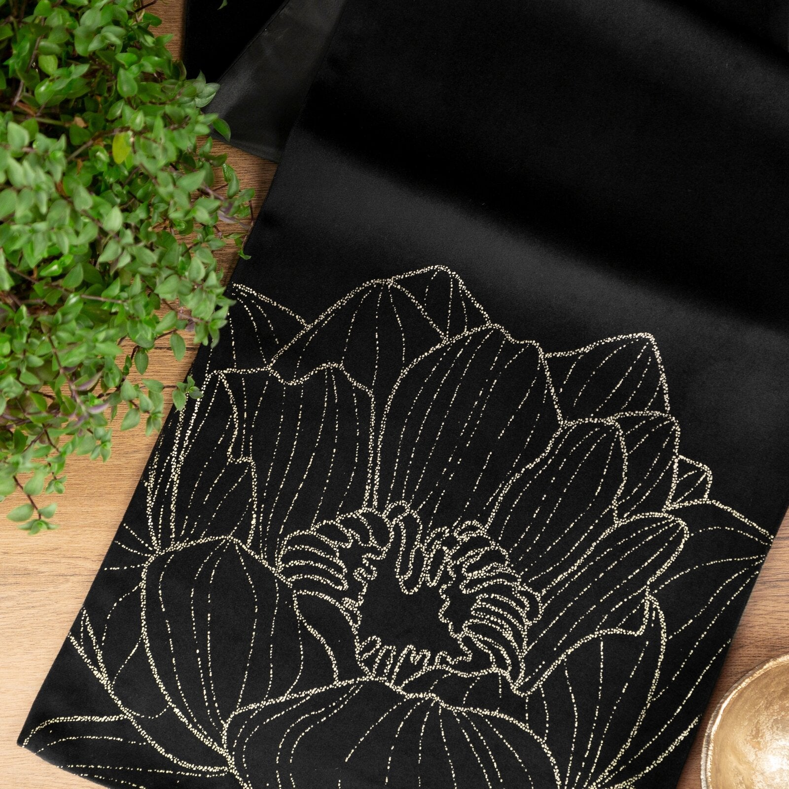 Samta siksna ar šampanieša apdruku platums: 35 cm, garums: 140 cm, krāsa: melna, svars: 250 GSM, sastāvs: Materiāls: 100% poliesteris.
