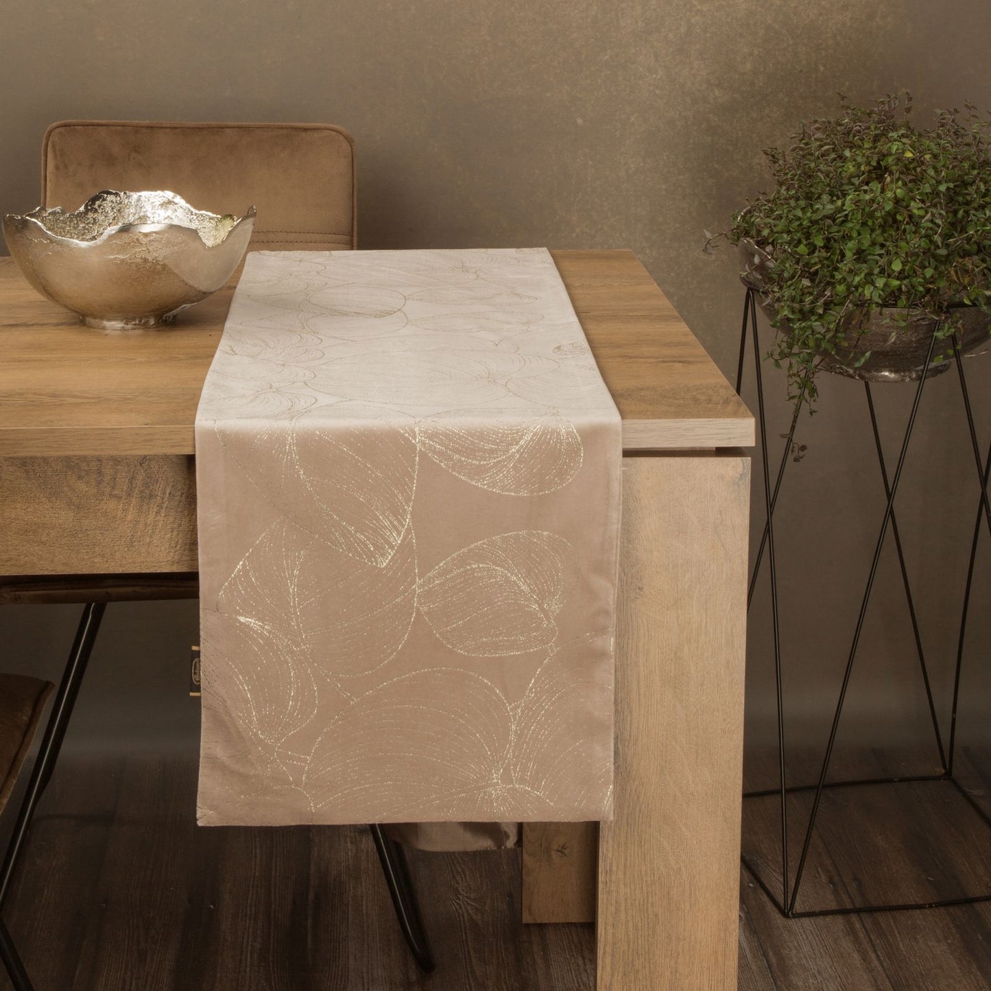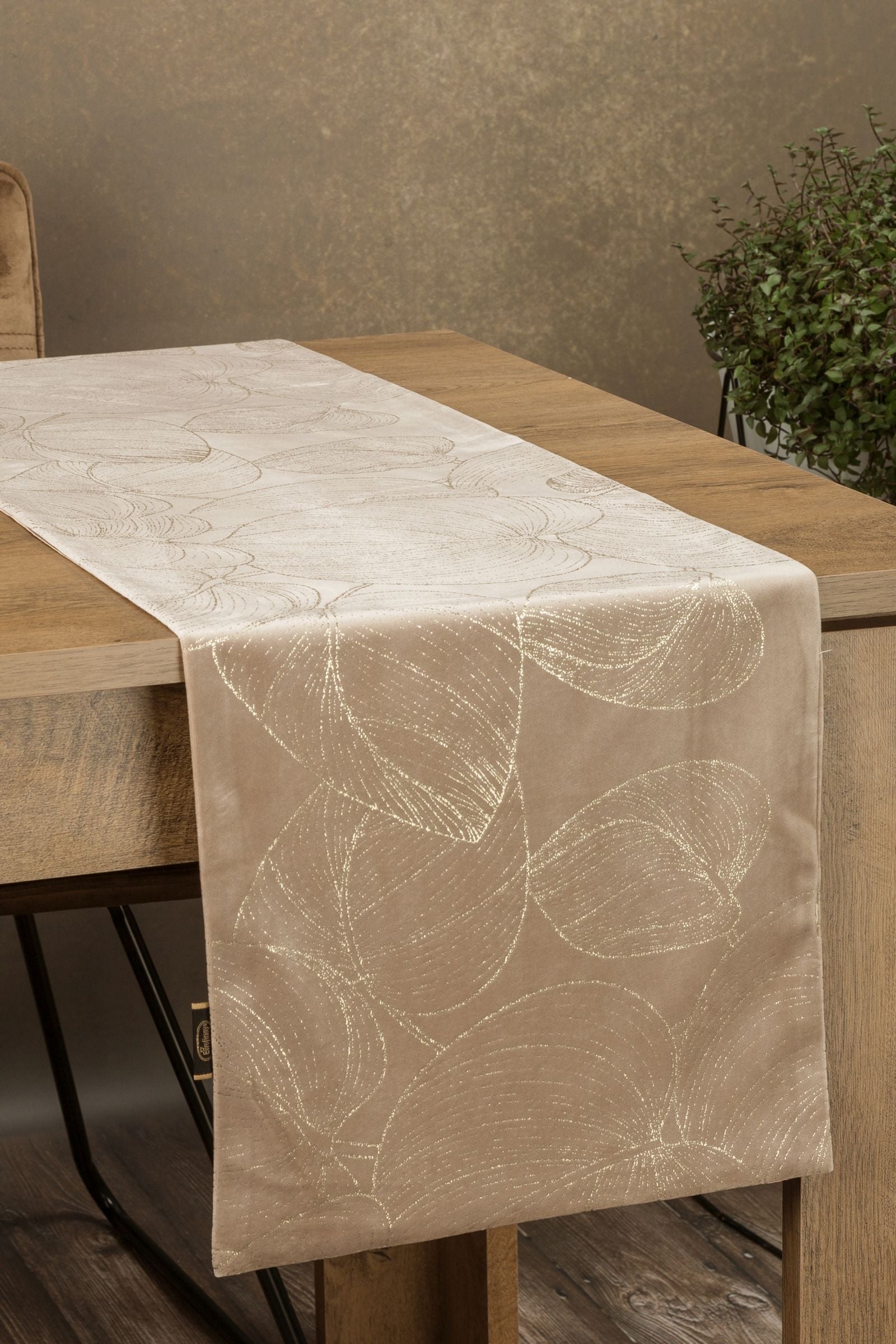 Samta siksna ar šampanieša apdruku platums: 35 cm, garums: 140 cm, krāsa: bēša, svars: 250 GSM, sastāvs: Sastāvs: 100% poliesteris.