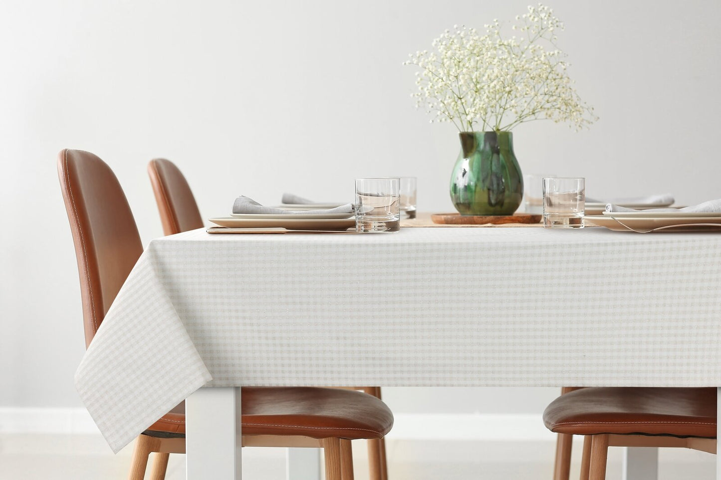 Spīdīgs galdauts ar Ziemassvētku motīvu platums: 40 cm, garums: 140 cm, krāsa: šampanieša, sastāvs: Sastāvs: 65% poliestera, 27% kokvilnas, 8% metālisku diegu.