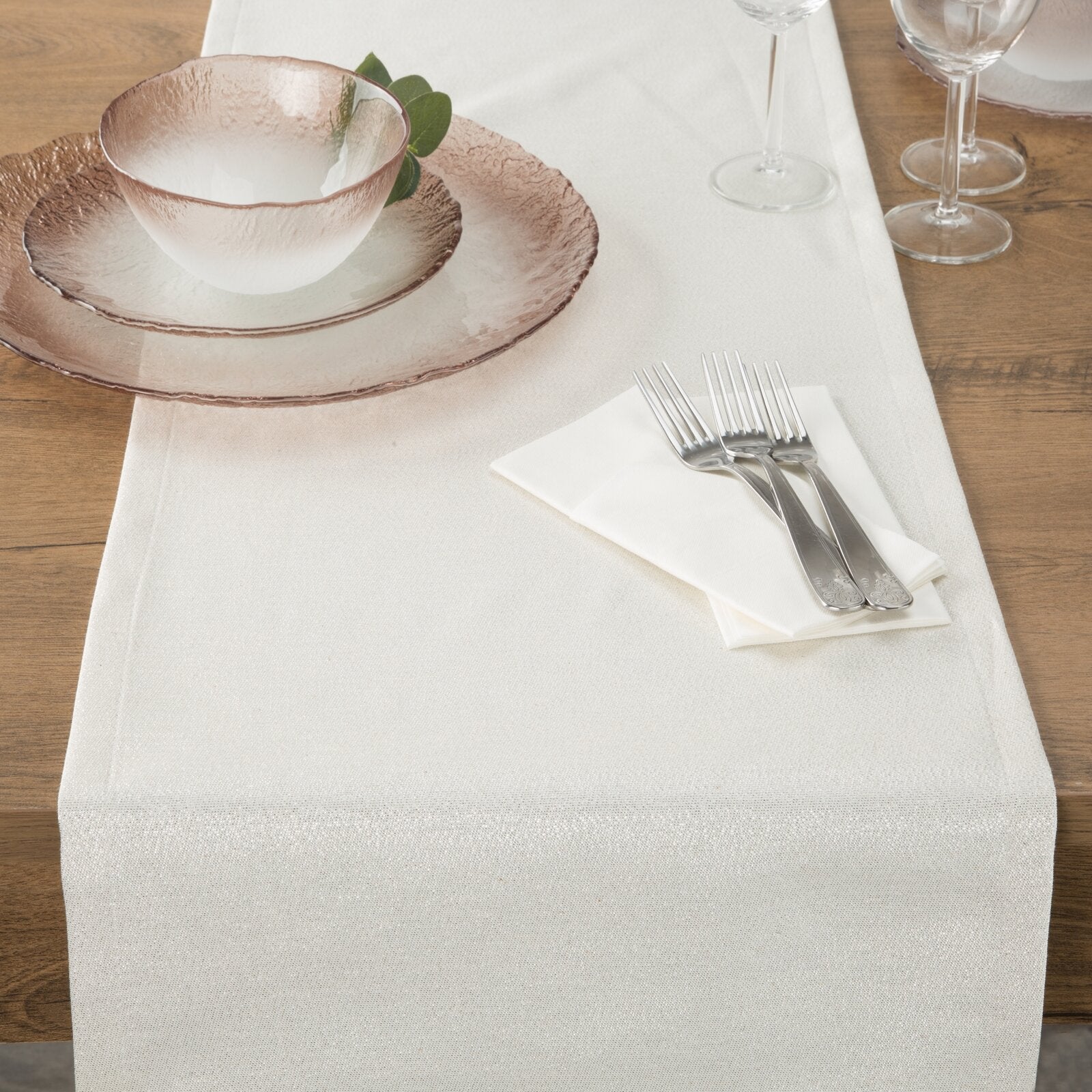 Spīdīgs galdauts ar Ziemassvētku motīvu platums: 40 cm, garums: 180 cm, krāsa: šampanieša, sastāvs: Sastāvs: 65% poliestera, 27% kokvilnas, 8% metālisku diegu.