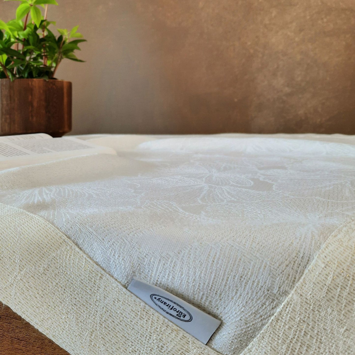 Salvetes rotātas ar atvērumu un zelta pavedienu platums: 85 cm, garums: 85 cm, krāsa: krēma, svars: 220 GSM, sastāvs: Sastāvs: 100% poliesteris