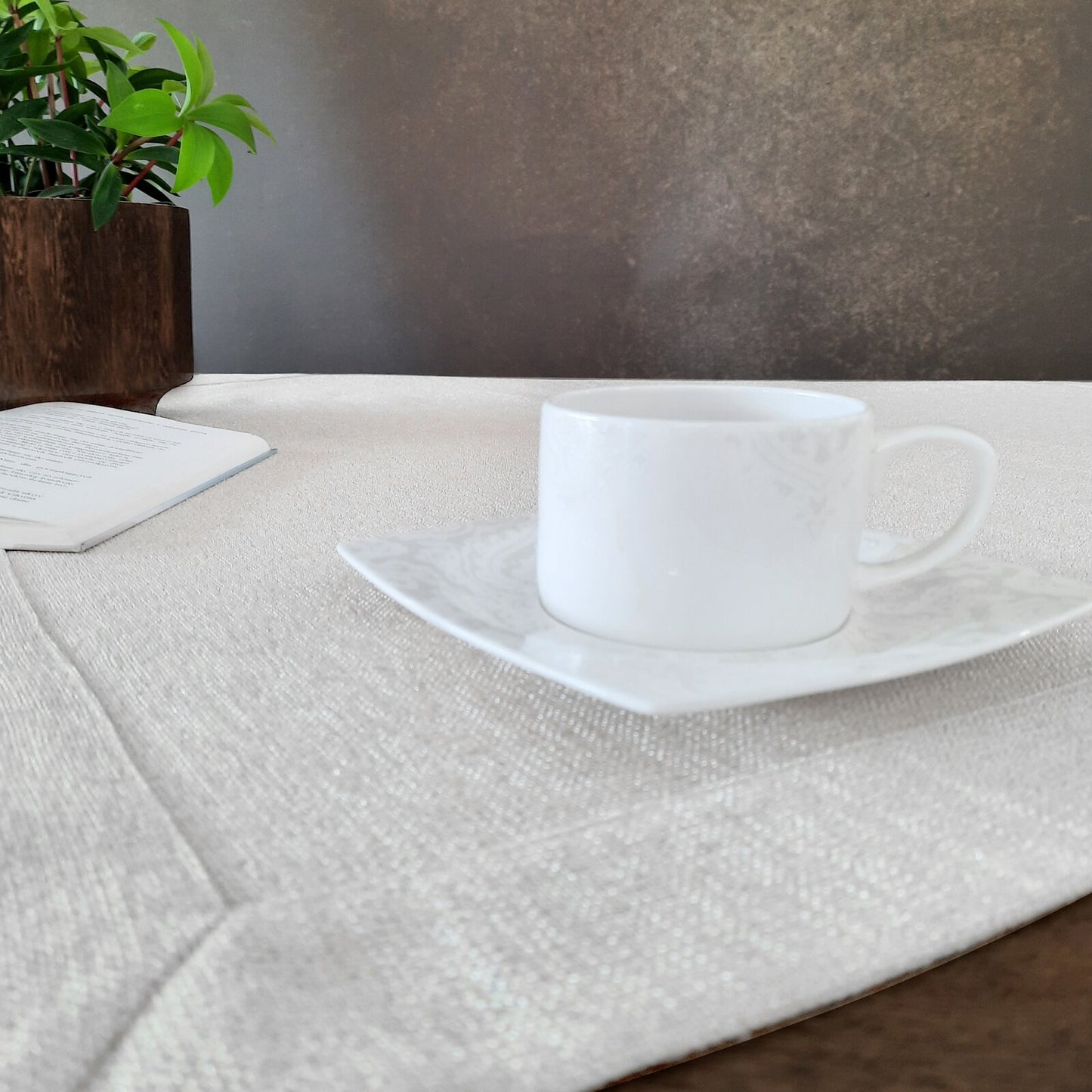 Dekoratīvais kantilēna platums: 40 cm, garums: 180 cm, krāsa: balta, svars: 280 GSM, sastāvs: Sastāvs: 100% poliesteris.
