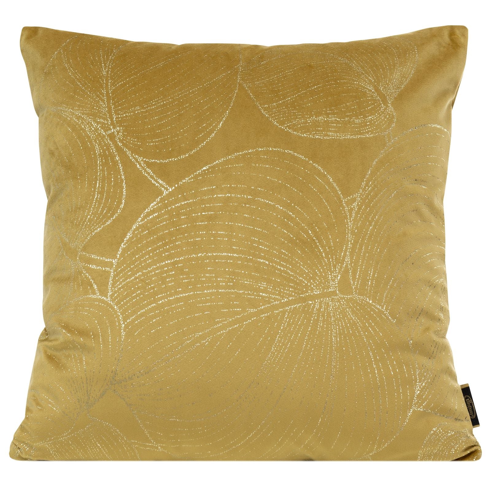 Apdrukāta samta spilvendrānas platums: 45 cm, garums: 45 cm, krāsa: zelta, svars: 250 GSM, sastāvs: Sastāvs: 100% poliesteris