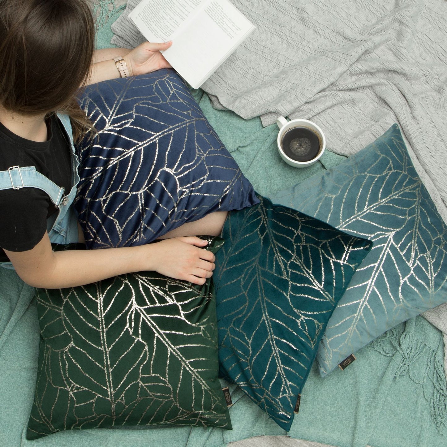 Apdrukāta samta spilvendrānas platums: 45 cm, garums: 45 cm, krāsa: tumši zila, svars: 250 GSM, sastāvs: Sastāvs: 100% poliesteris