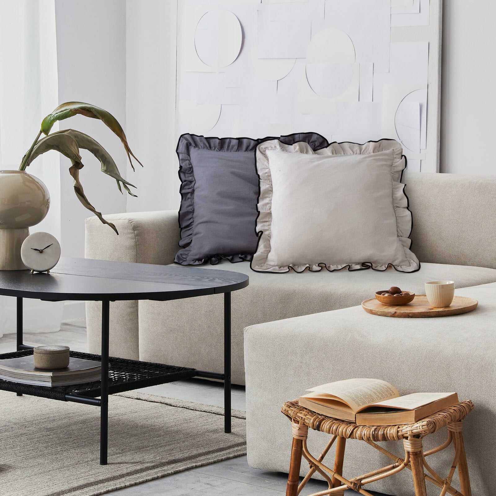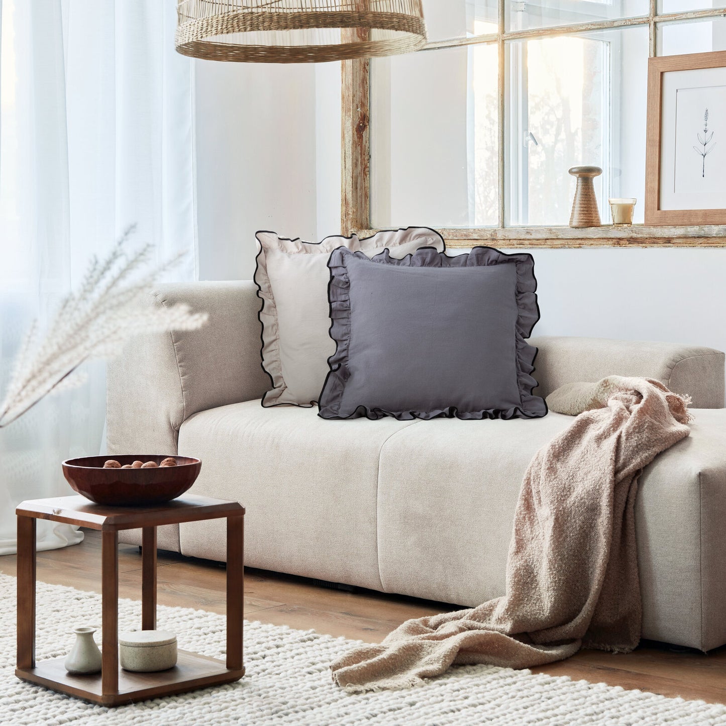 Dekoratīvs spilvendrānas uzvalks bohho stilā ar volāniem platums: 45 cm, garums: 45 cm, krāsa: tērauds, sastāvs: Materiāls: 100% kokvilna.