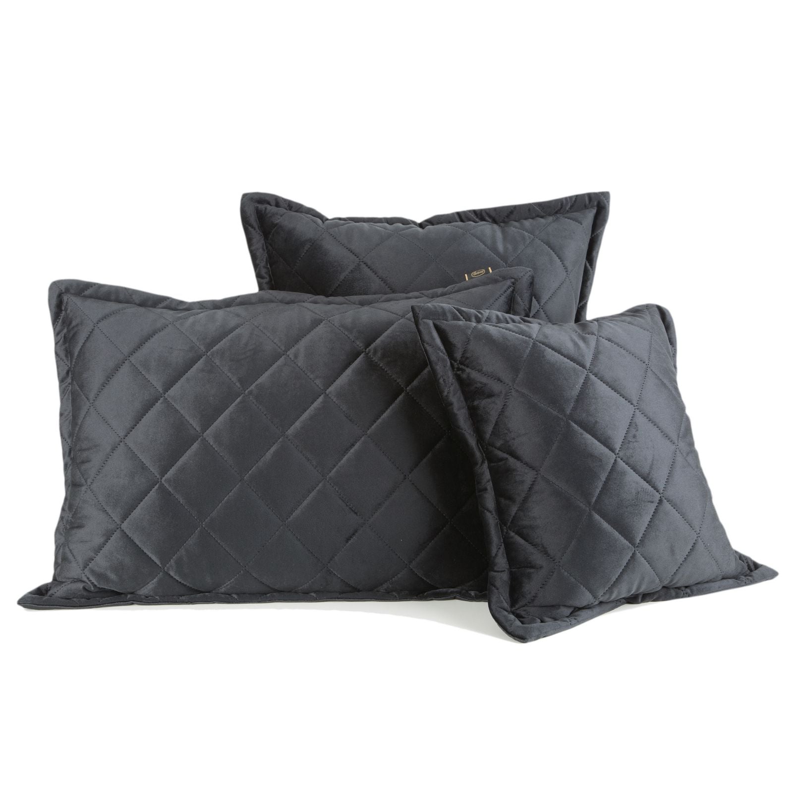 Elegants, plūksnots gultas pārklājs no augstas kvalitātes samta ar izteiktu spīdumu. Virsma ir stepēta ar tradicionālo stepēšanas metodi. Malas ir apdarinātas ar spīdīgu apdari. platums: 60 cm, garums: 60 cm, krāsa: melna, svars: 220+70+220 GSM, sastāvs: Sastāvs: 100% poliesteris.