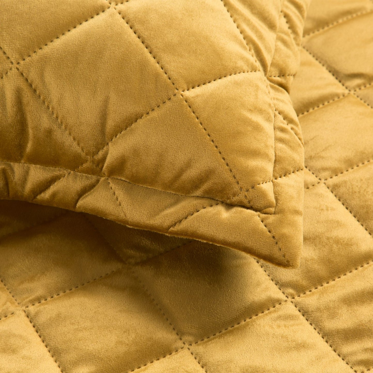 Elegants, plūksnots gultas pārklājs no augstas kvalitātes samta ar izteiktu spīdumu. Virsma ir stepēta ar tradicionālo stepēšanas metodi. Malas ir apdarinātas ar spīdīgu apdari. platums: 60 cm, garums: 60 cm, krāsa: zelta, svars: 220+70+220 GSM, sastāvs: Sastāvs: 100% poliesteris.