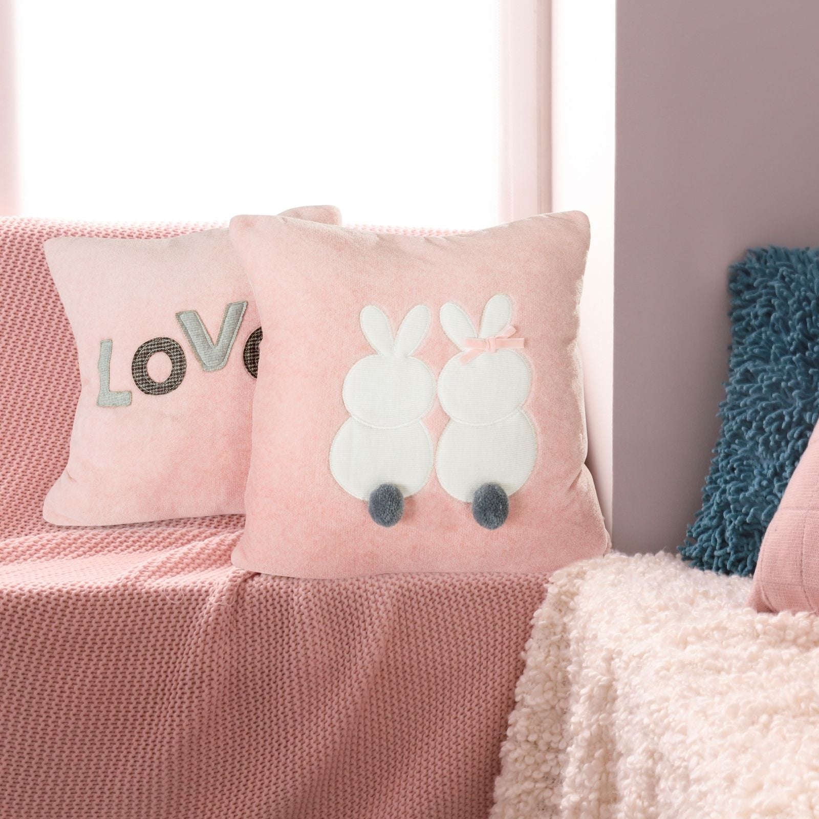 Nice touch spilvendrāna ar piešūtiem burtiem, platums: 45 cm, garums: 45 cm, krāsa: rozā, svars: 250 GSM, sastāvs: Sastāvs: 100% poliesteris