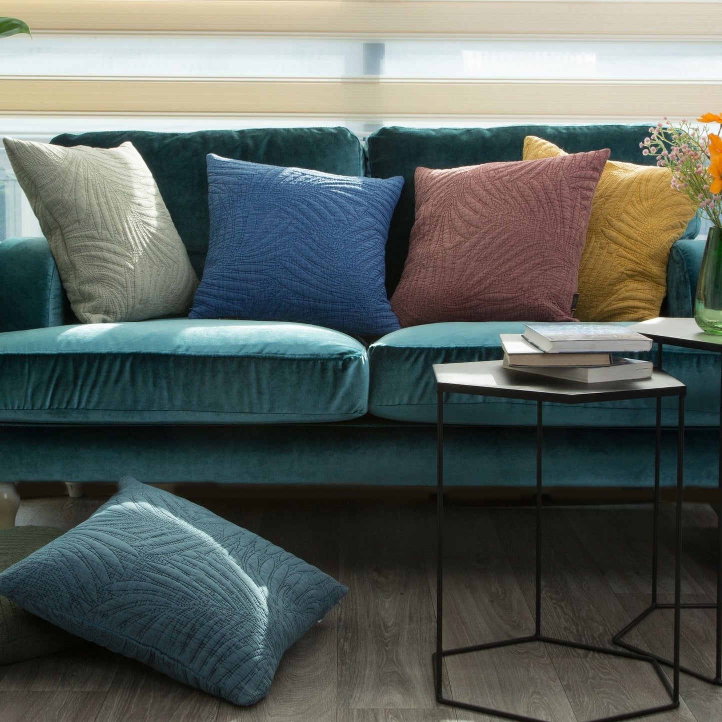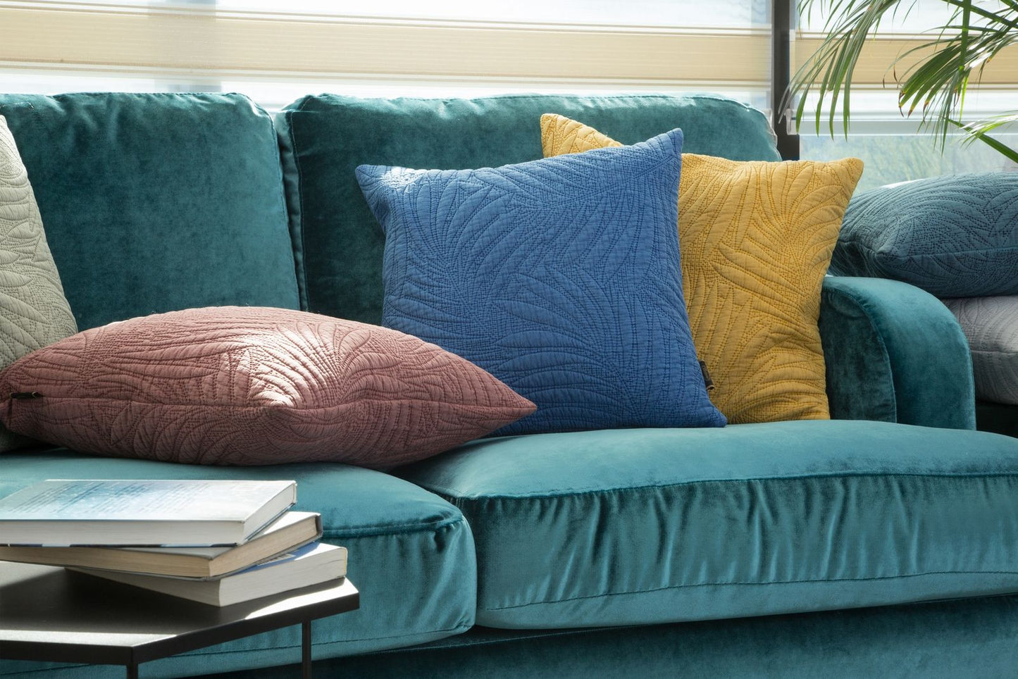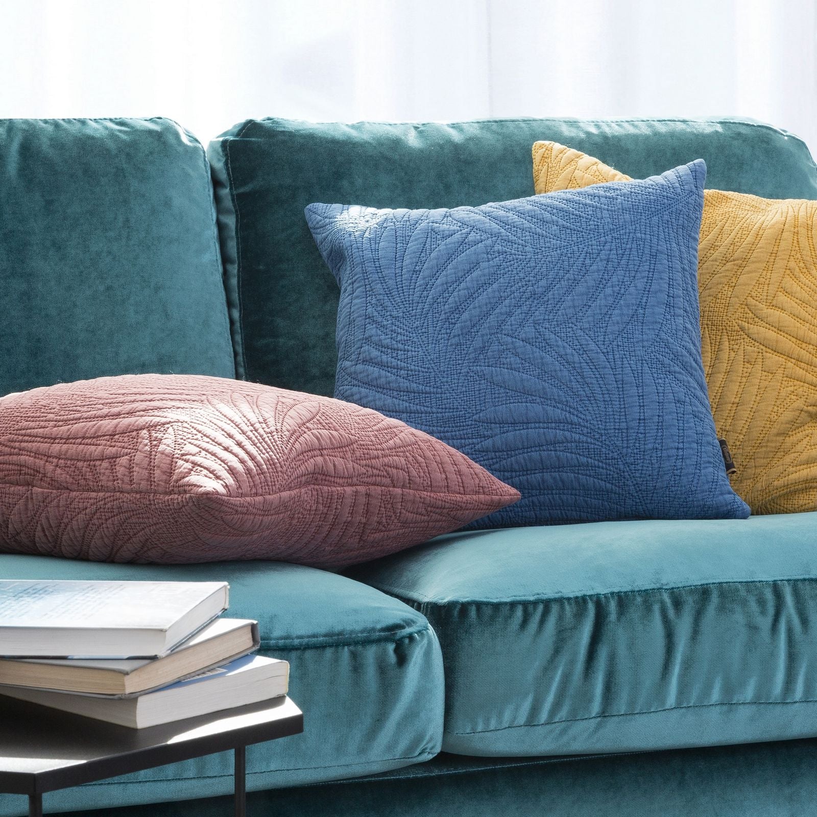 Ar karstspiedes tehniku izgatavots pārvalks uz spilvena, platums: 45 cm, garums: 45 cm, krāsa: zila, svars: 180 GSM, sastāvs: Sastāvs: 100% poliesteris