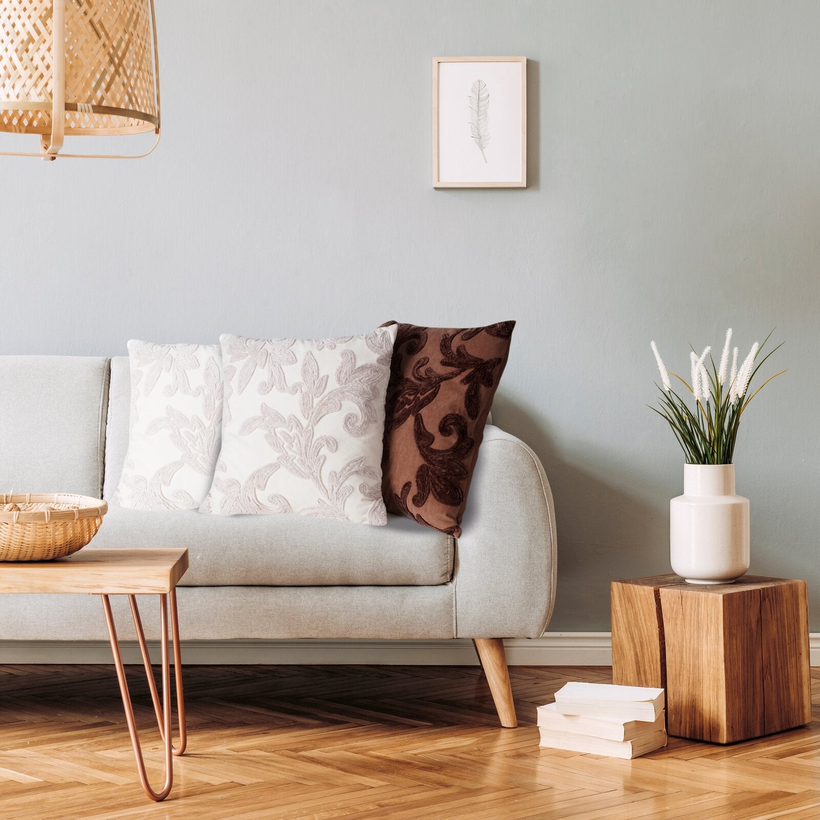 Samta spilvendrāna ar ornamentu platums: 45 cm, garums: 45 cm, krāsa: bēša, svars: 210 GSM, sastāvs: Sastāvs: 100% poliesteris