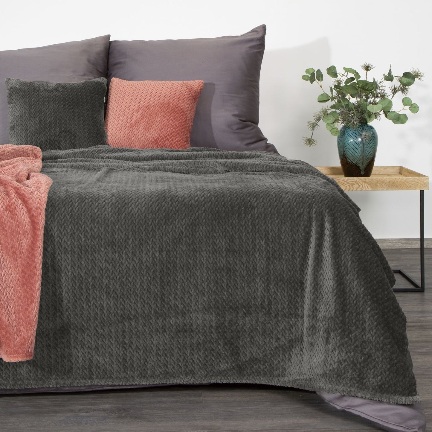 Klasiska sega, kas izgatavota no patīkamas pieskārienam šķiedras, izmantojot mikroflano tehnoloģiju. Vienkrāsaino, pūkaino tekstūru rotā minimālistisks siļķes reljefs. platums: 170 cm, garums: 210 cm, krāsa: grafīta, svars: 250GSM GSM, sastāvs: Sastāvs: 100% poliesteris
