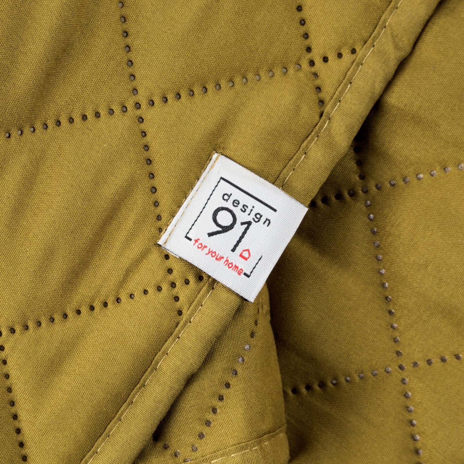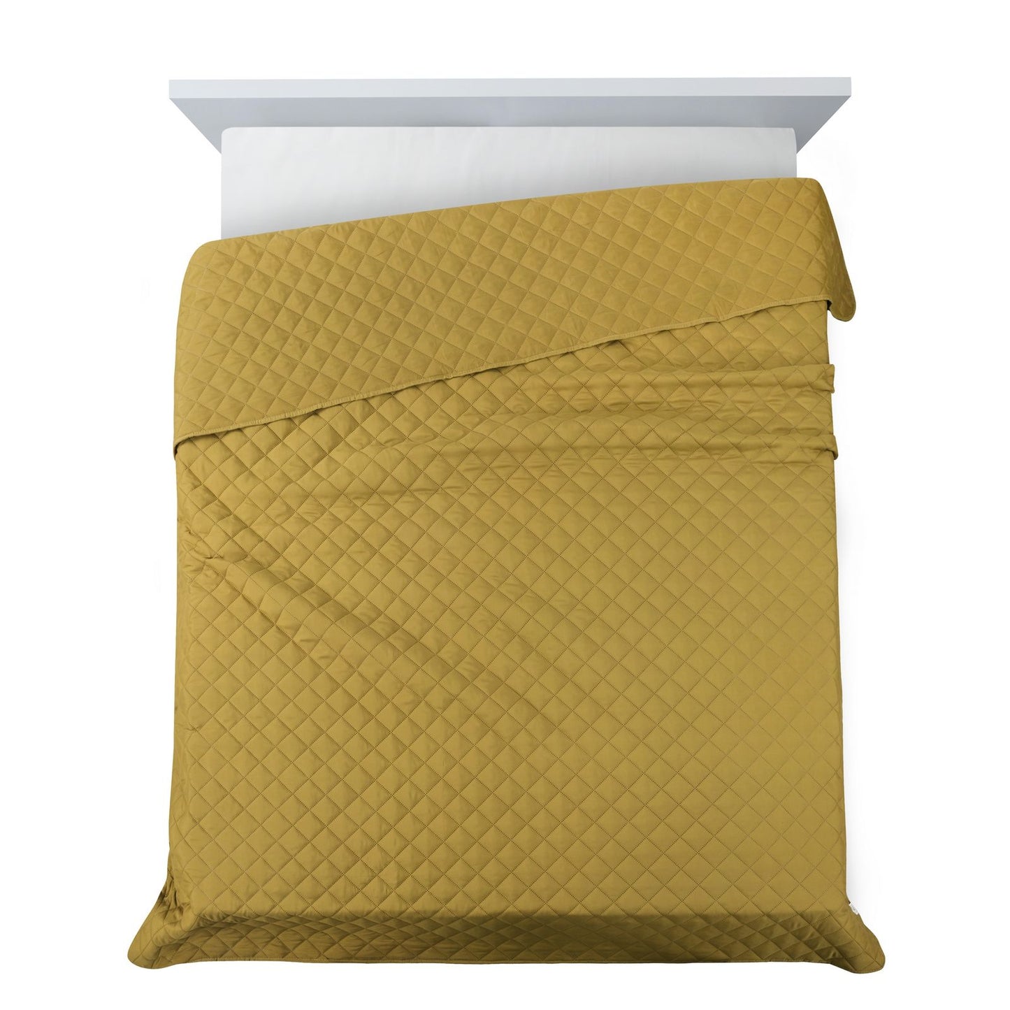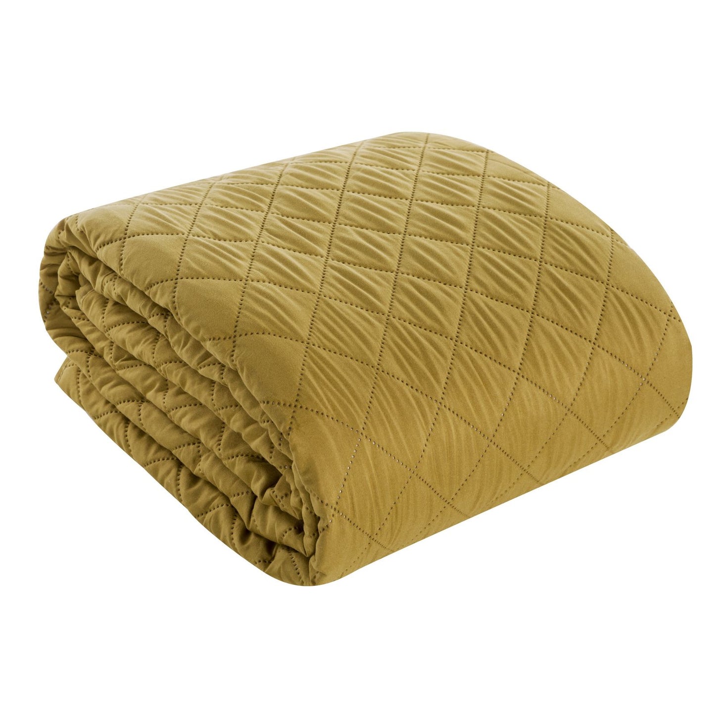 Gultas pārklājs izgatavots ar karstās presēšanas tehnoloģiju ar ģeometrisko rakstu, platums: 170 cm, garums: 210 cm, krāsa: sinepju, svars: 80+120+70 GSM, sastāvs: Sastāvs: 100% poliesteris.