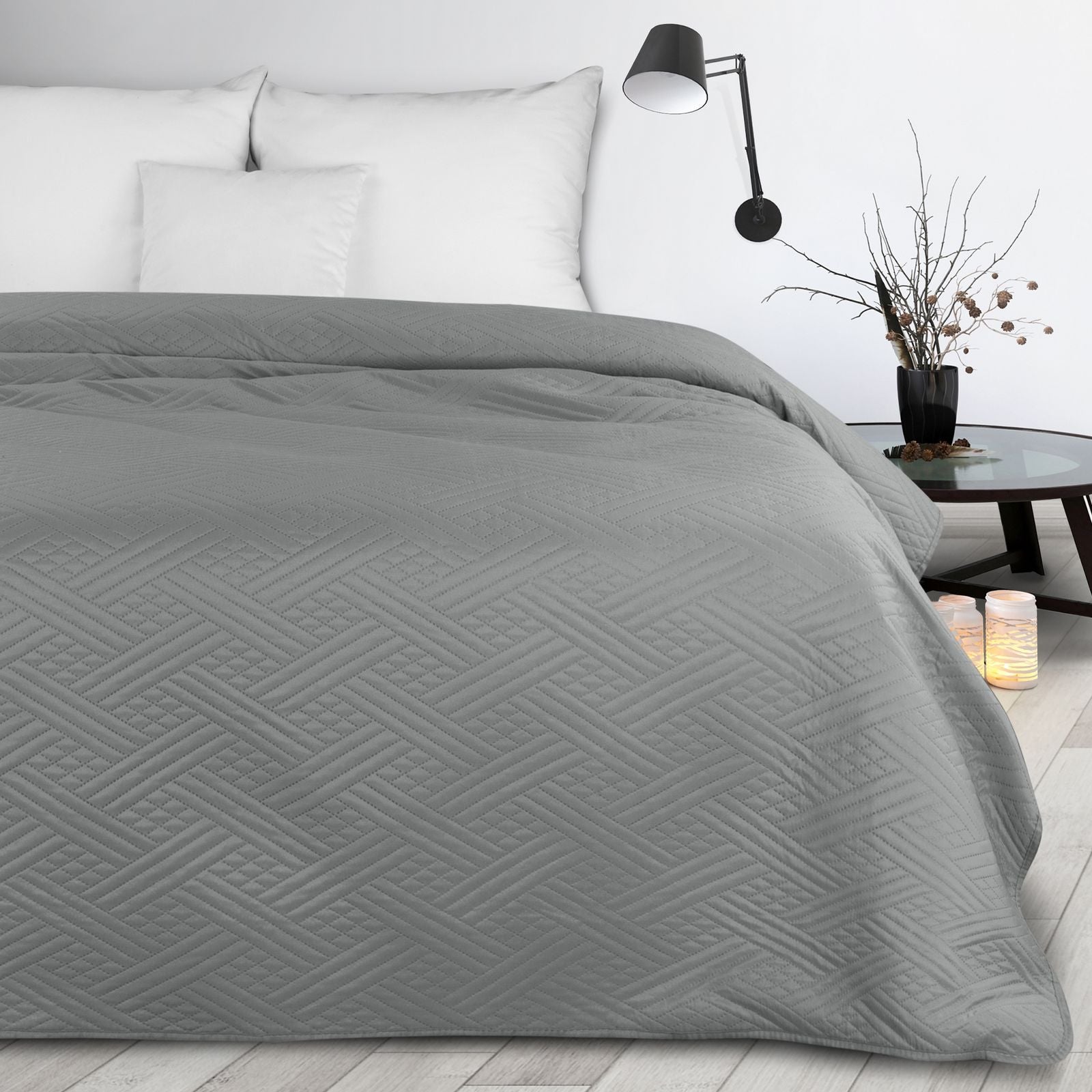 Vienkrāsains gultas pārklājs, izgatavots, izmantojot karstās preses tehnoloģiju Platums: 200 cm, Garums: 220 cm, Krāsa: grafīta, Svars: 70+120+70 GSM, Sastāvs: Sastāvs: 100% poliesteris.