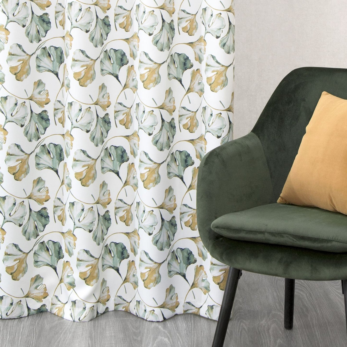 Aizkars ar apdrukātu ziedu efektu, platums: 140 cm, garums: 250 cm, krāsa: balta, svars: 210 GSM, sastāvs: Materiāls: 100% poliesteris