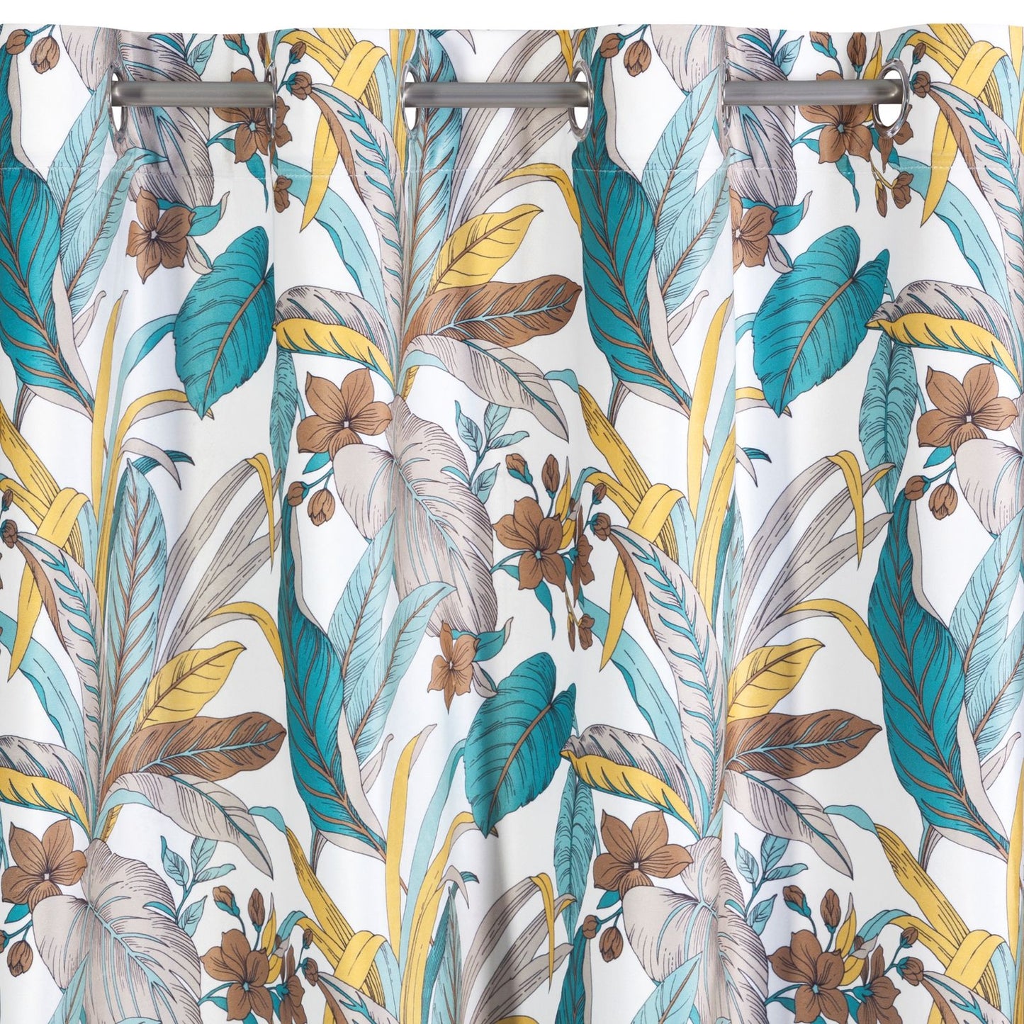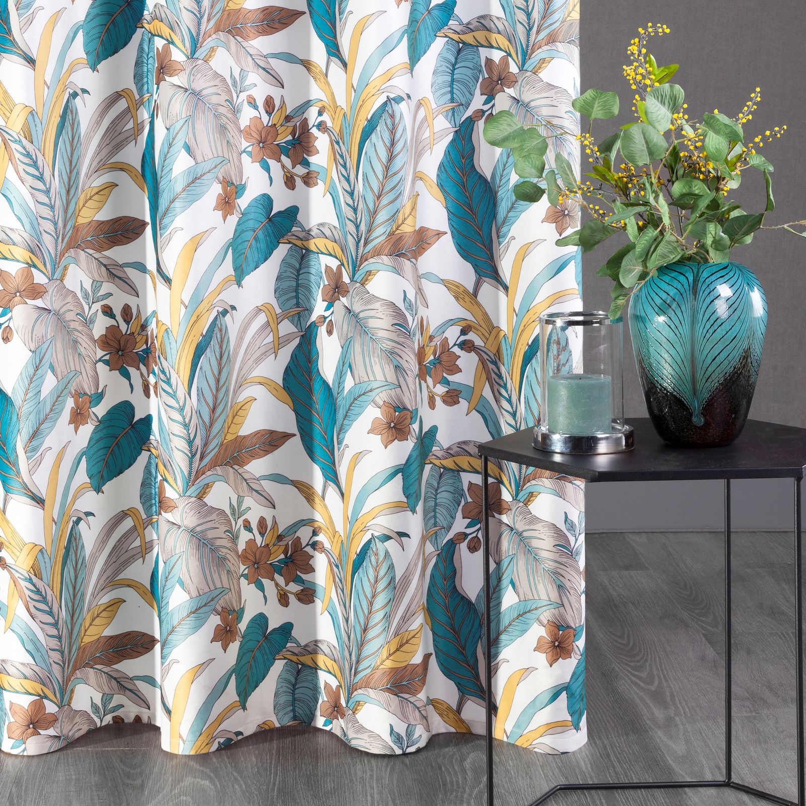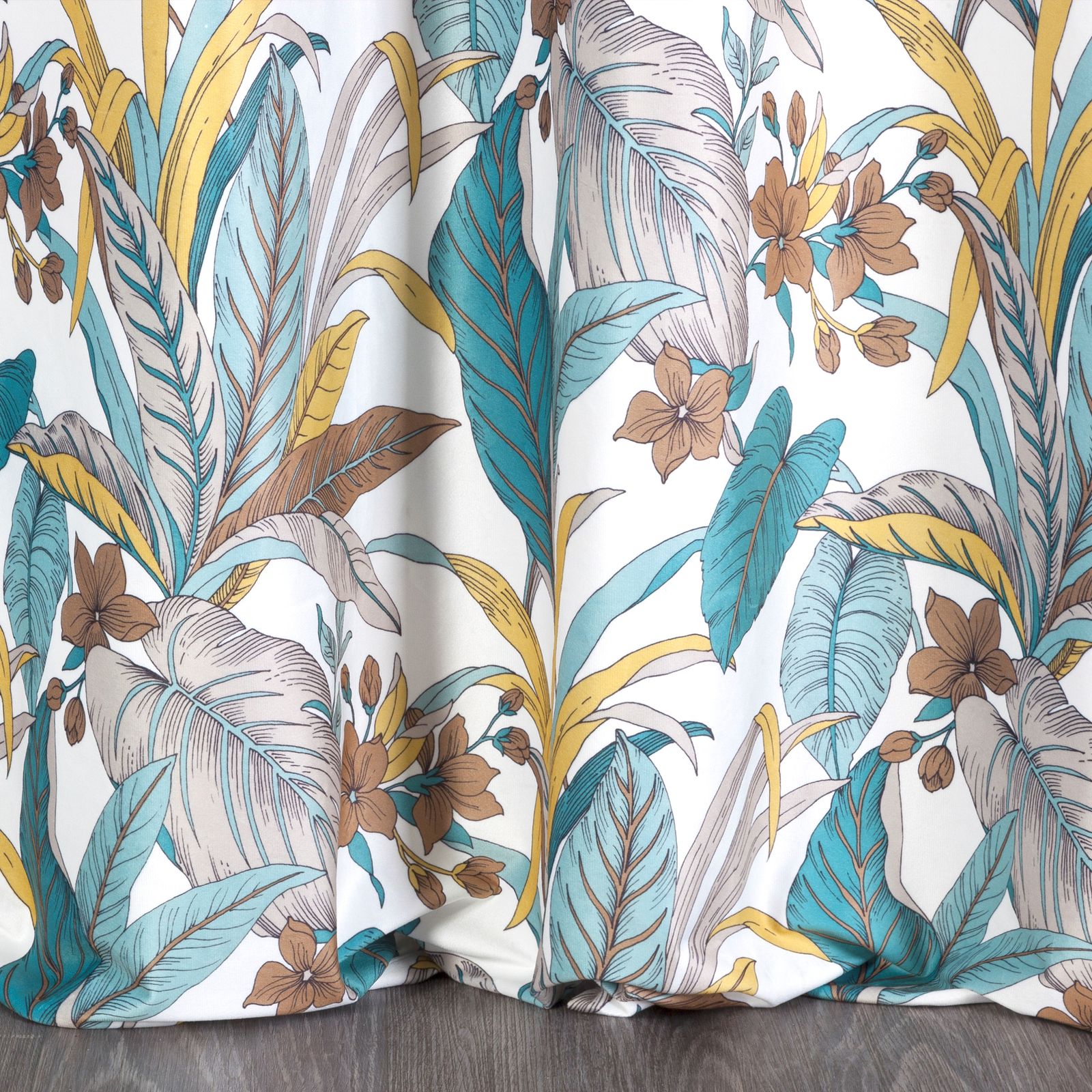 Apdrukāta samta aizkaru platums: 140 cm, garums: 250 cm, krāsa: tirkīza, svars: 200 GSM, sastāvs: Sastāvs: 100% poliesteris
