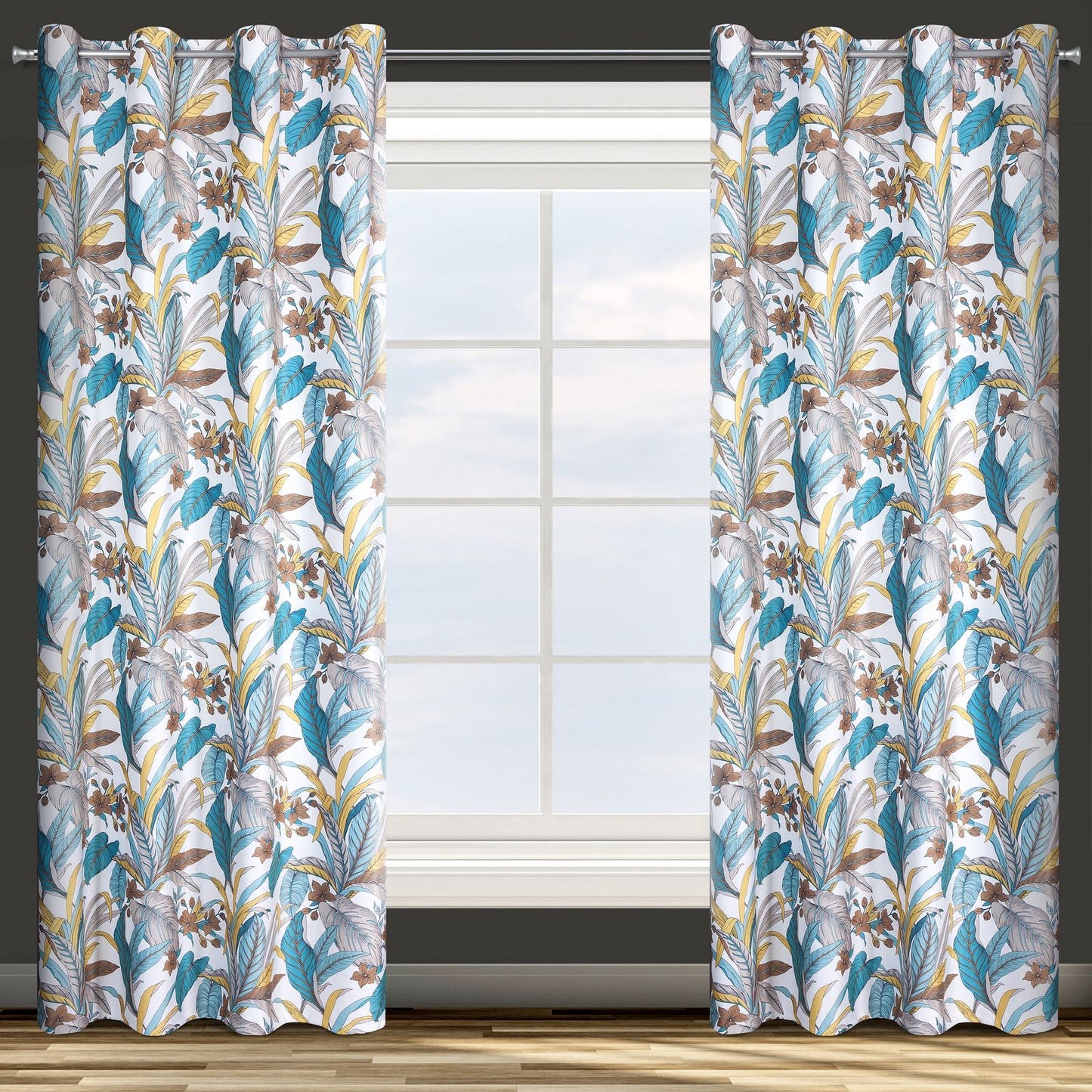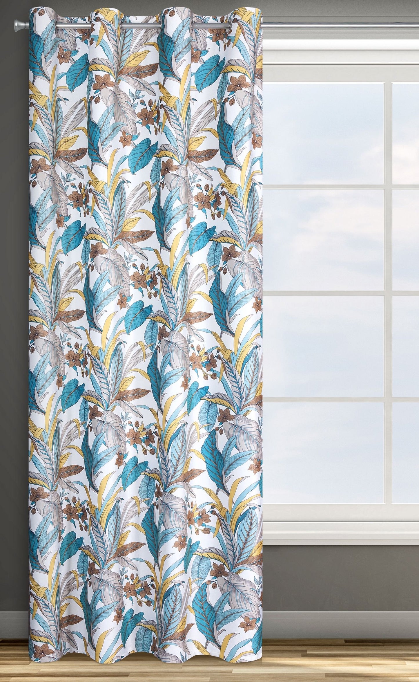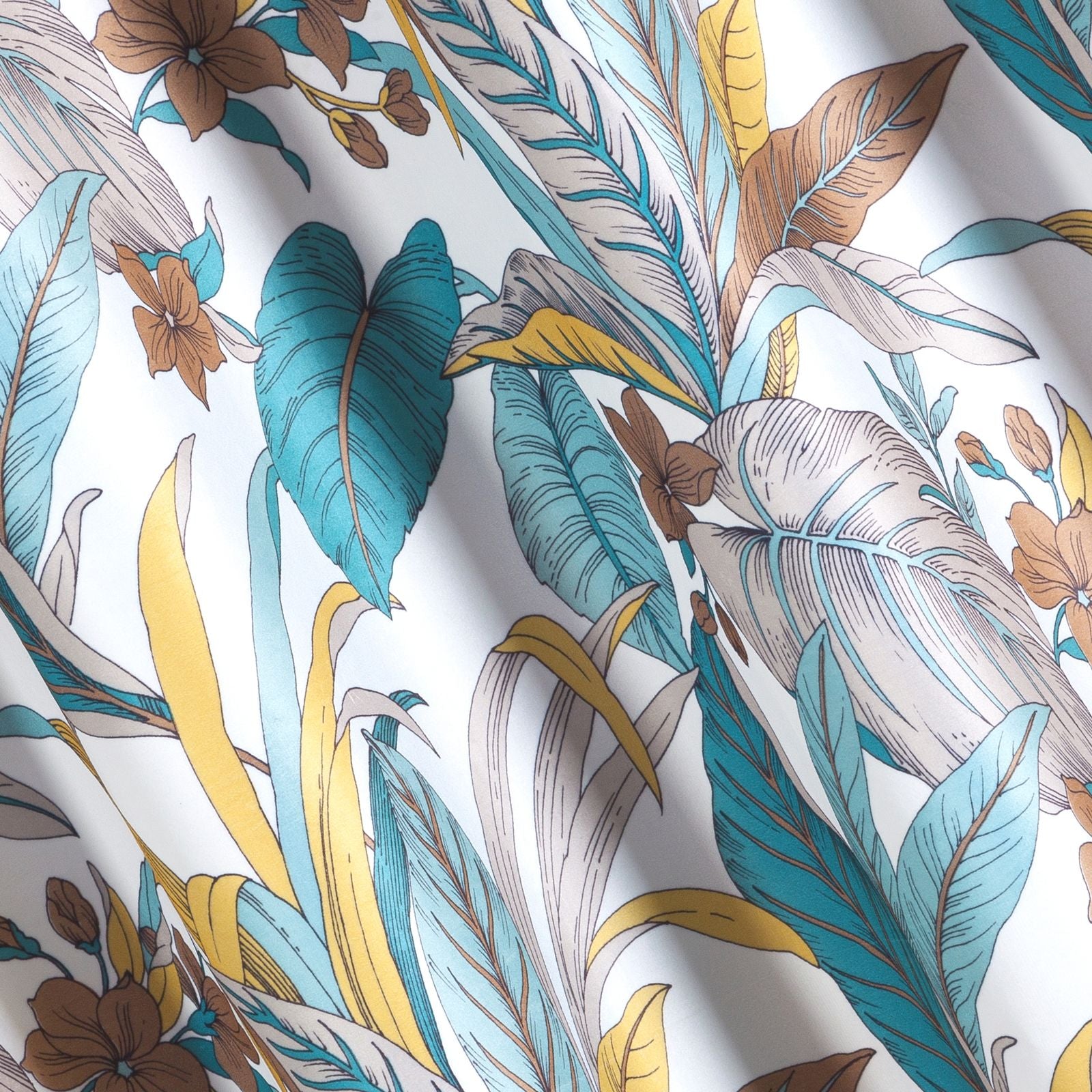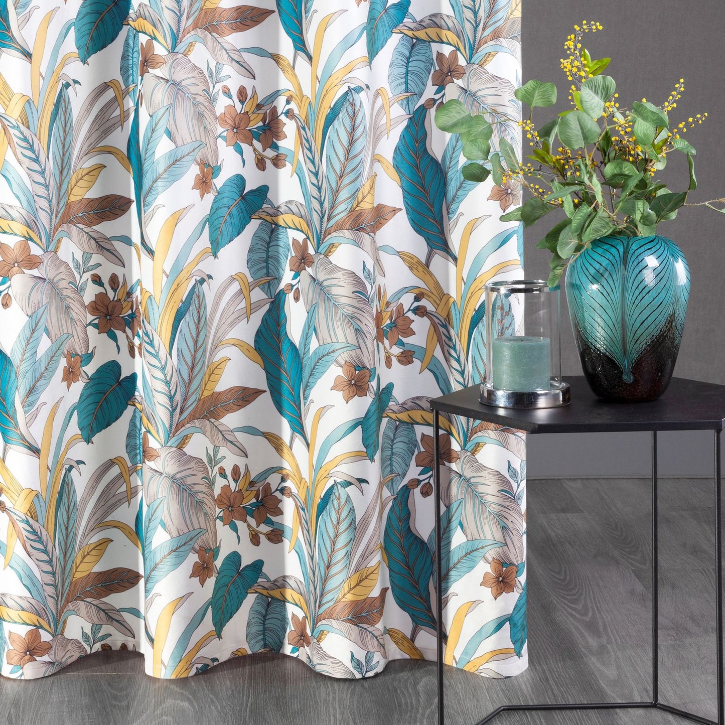 Apdrukāta samta aizkaru platums: 140 cm, garums: 250 cm, krāsa: tirkīza, svars: 200 GSM, sastāvs: Sastāvs: 100% poliesteris