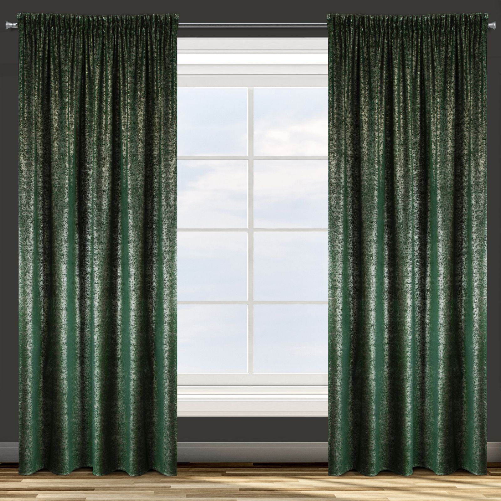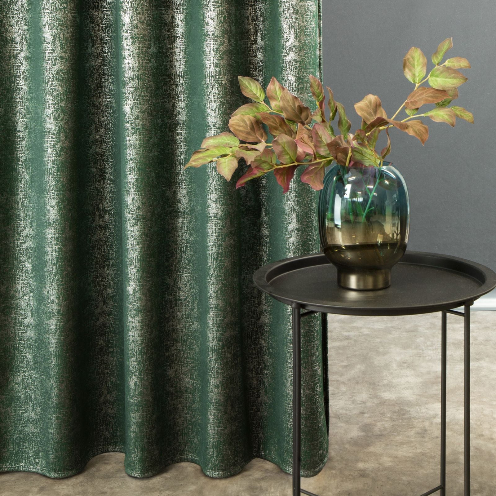 Samta aizkars ar sudraba apdruku platums: 140 cm, garums: 270 cm, krāsa: zaļa, svars: 200 GSM, sastāvs: Sastāvs: 100% poliesteris