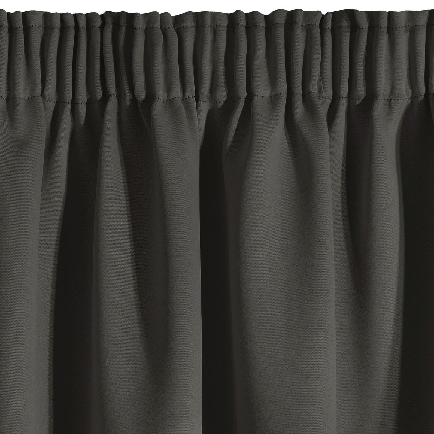 Aizkars ar aptumšojošu aptumšošanas aizkaru no aptumšojoša auduma. Lieliska siltumizolācija un skaņas izolācija interjerā. Vienkrāsains aizkars ar minimālisma dizainu. Platums: 135 cm, garums: 270 cm, krāsa: grafīta, svars: 210 GSM, sastāvs: Materiāls: 100% poliesteris.