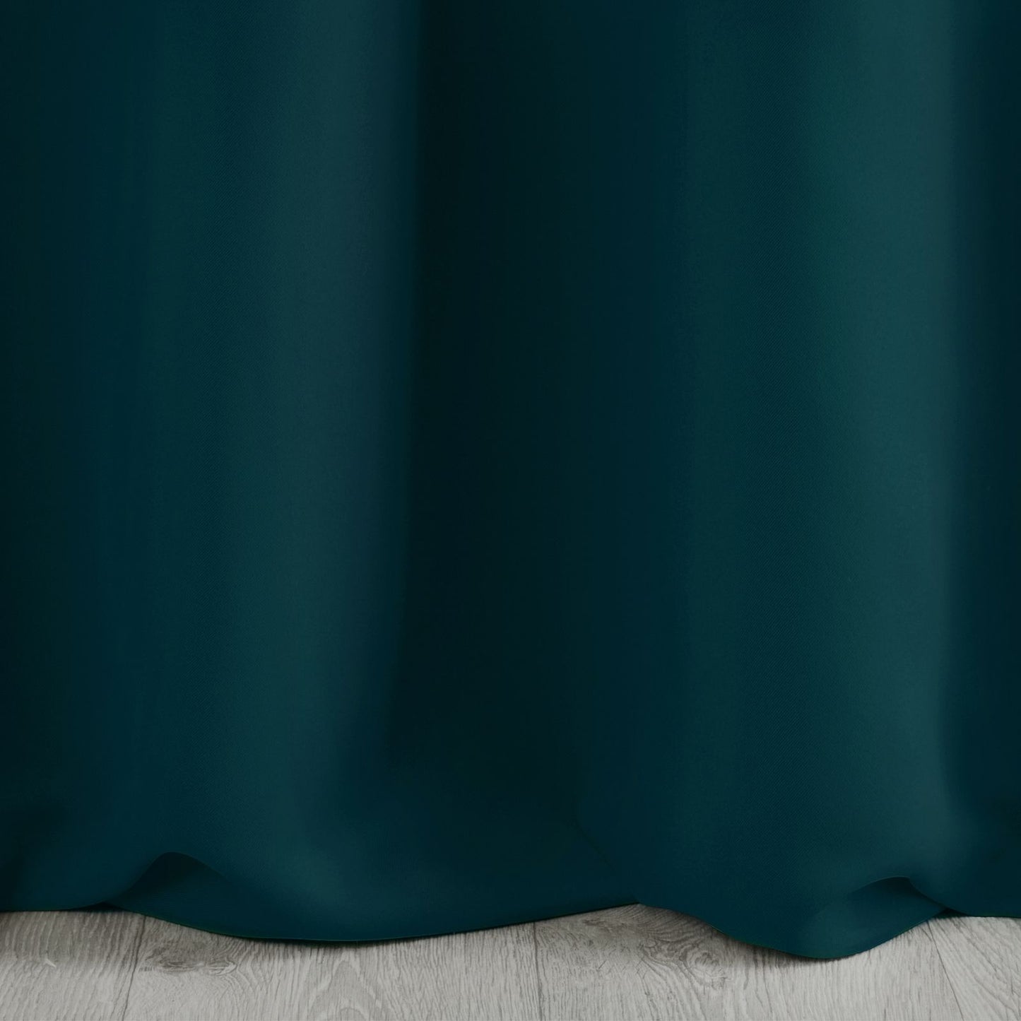 Aizkars ar aptumšojošu aptumšošanas aizkaru no aptumšojoša auduma. Lieliska siltumizolācija un skaņas izolācija interjerā. Vienkrāsains aizkars ar minimālisma dizainu. Platums: 135 cm, garums: 250 cm, krāsa: tumši tirkīza, svars: 210 GSM, sastāvs: Materiāls: 100% poliesteris.