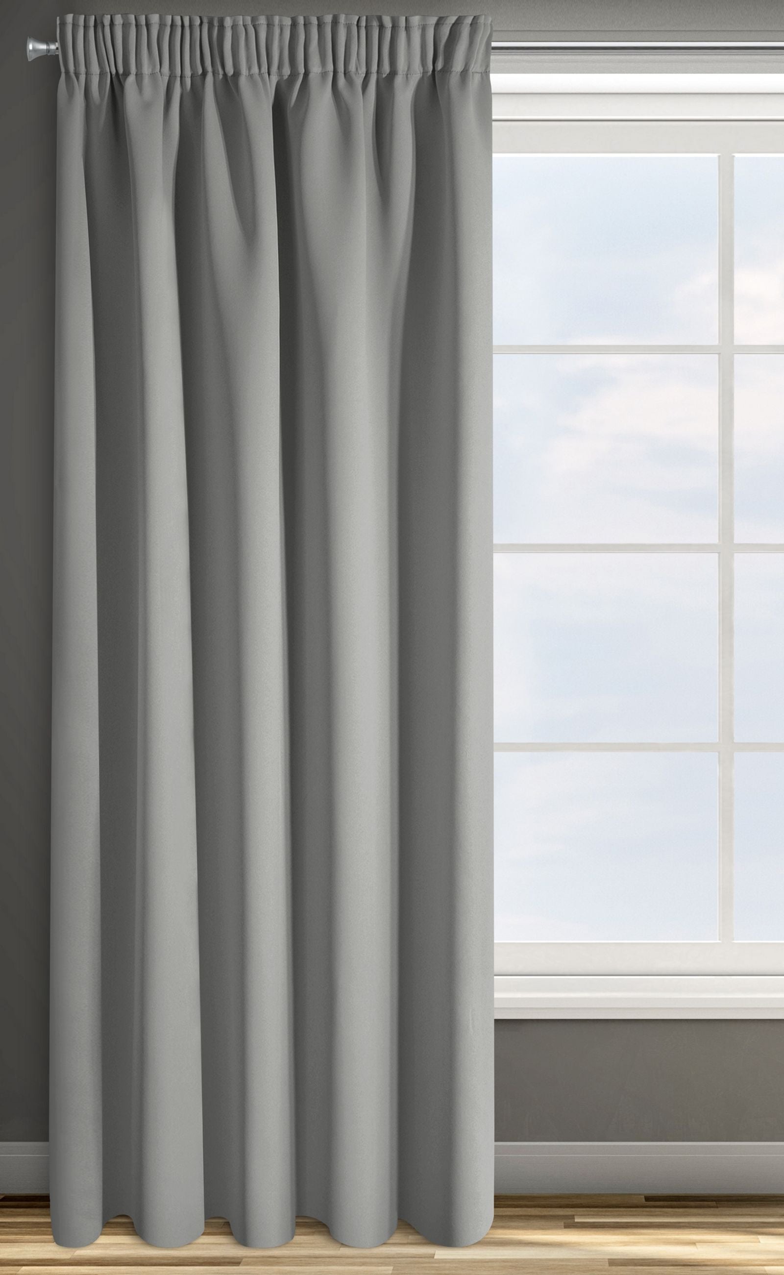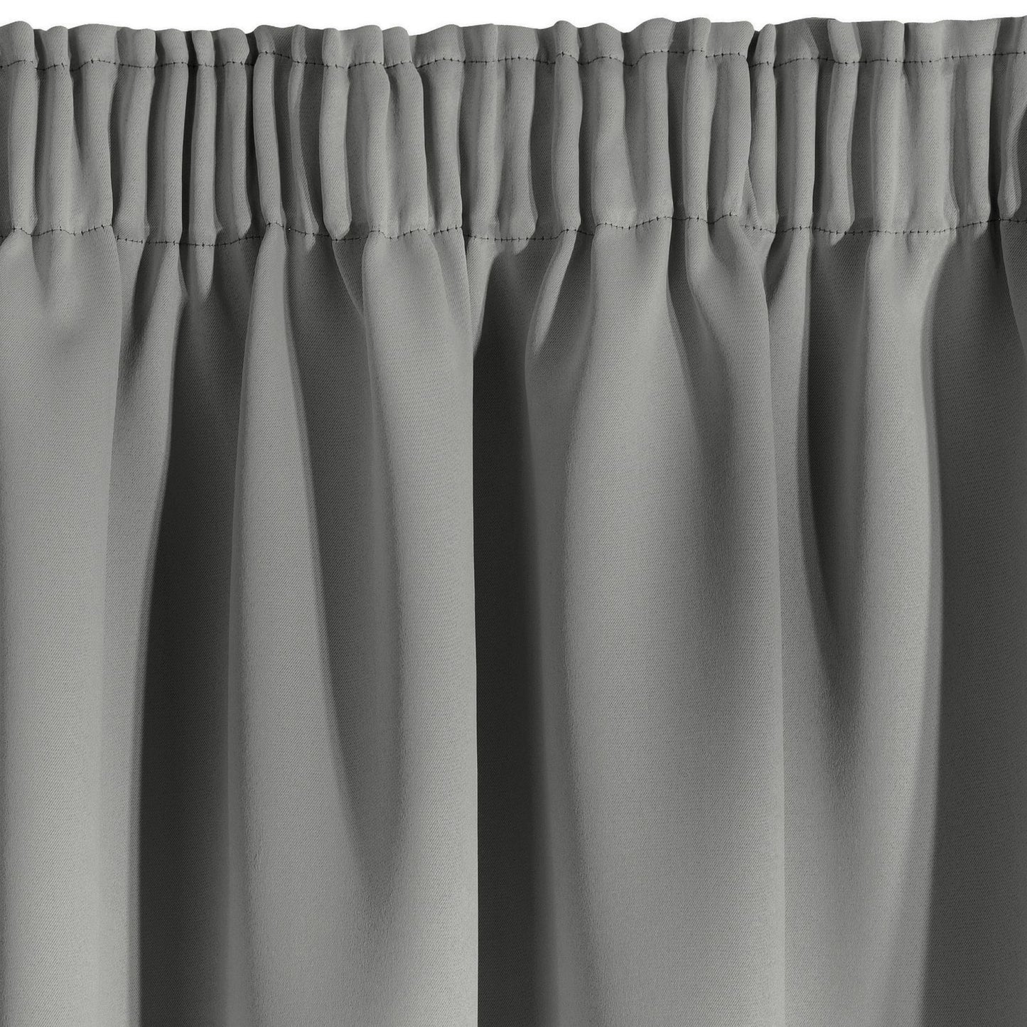 Aizkars ar aptumšojošu aptumšošanas aizkaru no aptumšojoša auduma. Lieliska siltumizolācija un skaņas izolācija interjerā. Vienkrāsains aizkars ar minimālisma dizainu. Platums: 140 cm, garums: 270 cm, krāsa: pelēka, svars: 210 GSM, sastāvs: Materiāls: 100% poliesteris.