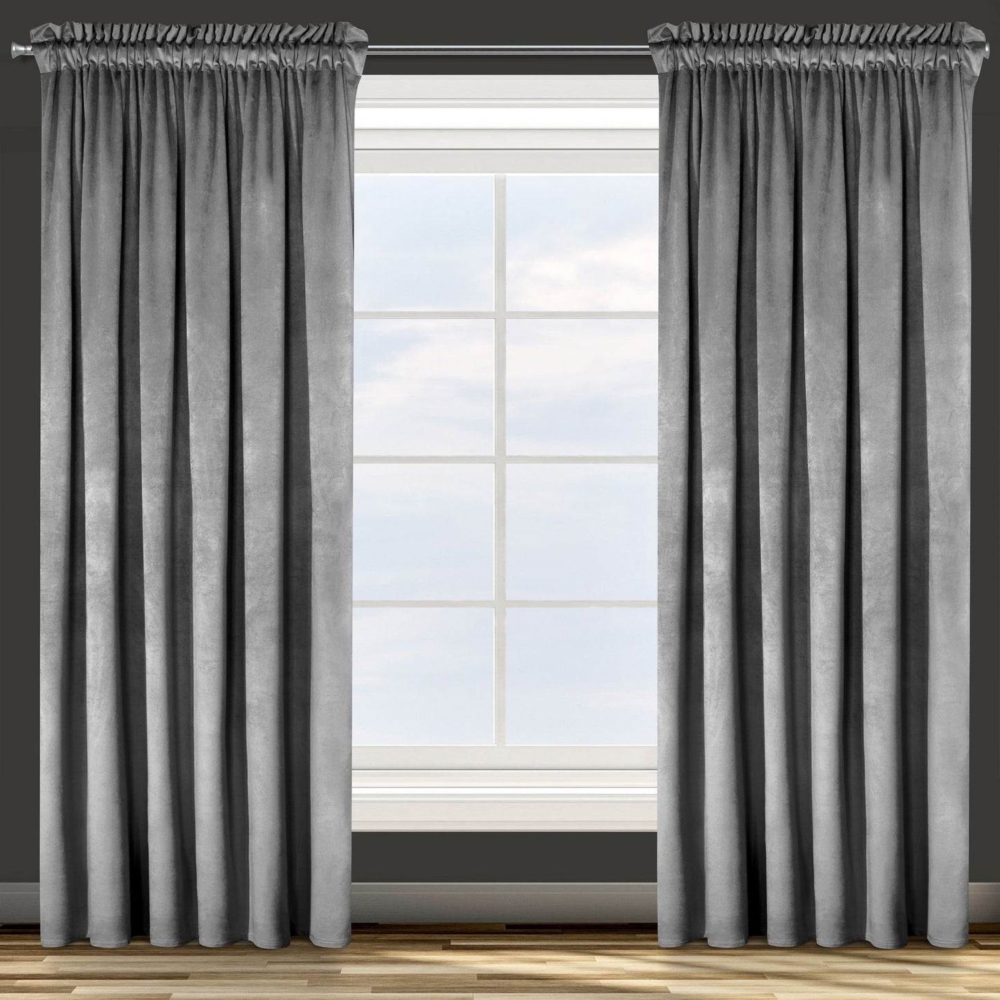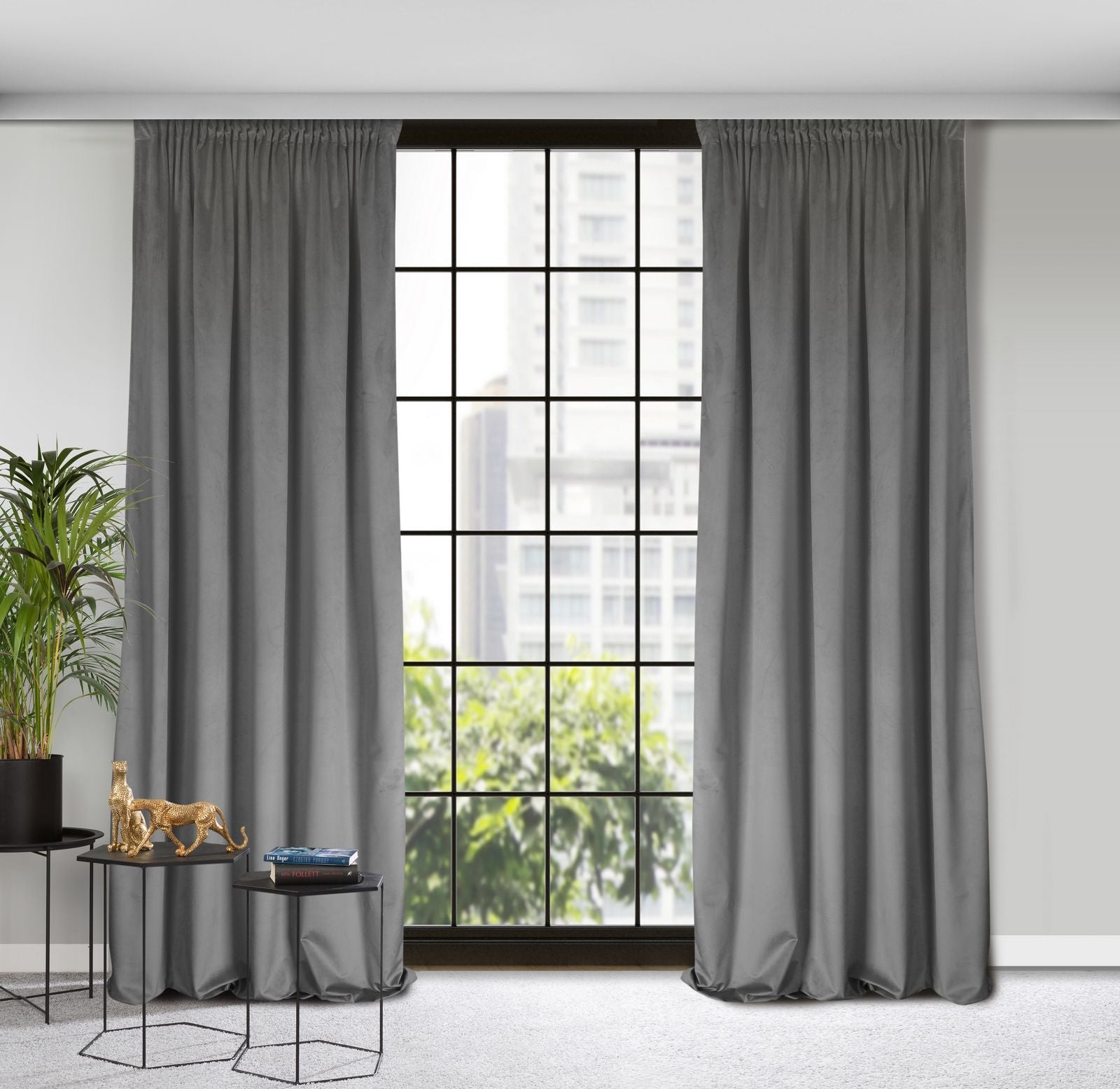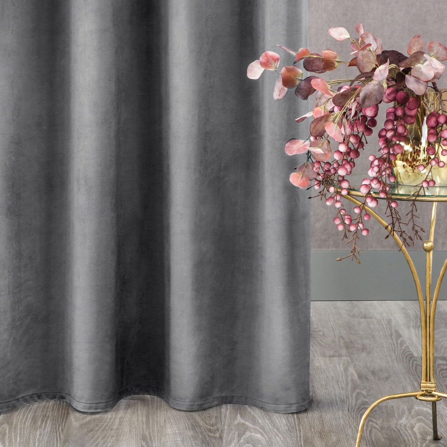 Vienkrāsains samta aizkars platums: 140 cm, garums: 270 cm, krāsa: tērauda, svars: 200 GSM, sastāvs: Sastāvs: 100% poliesteris