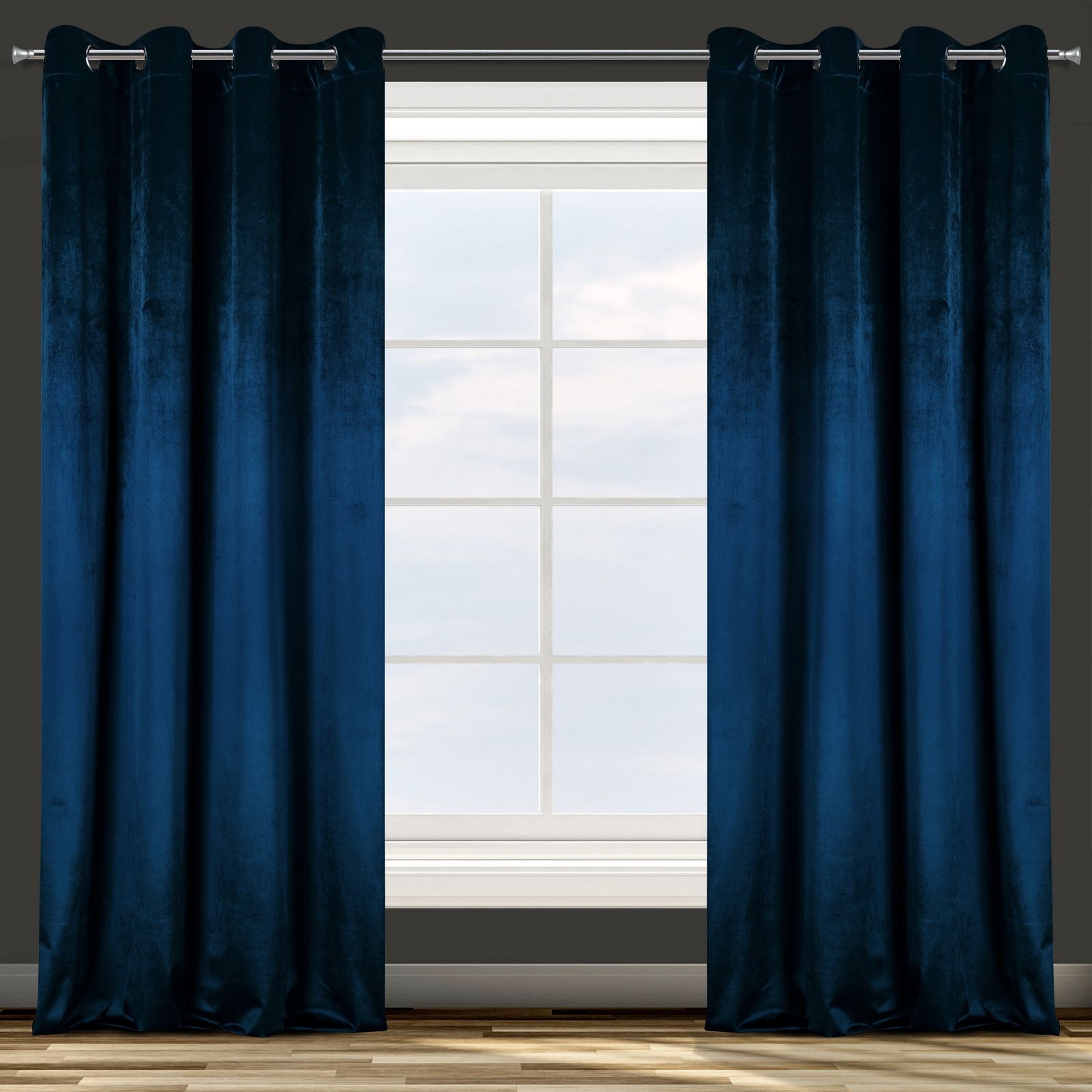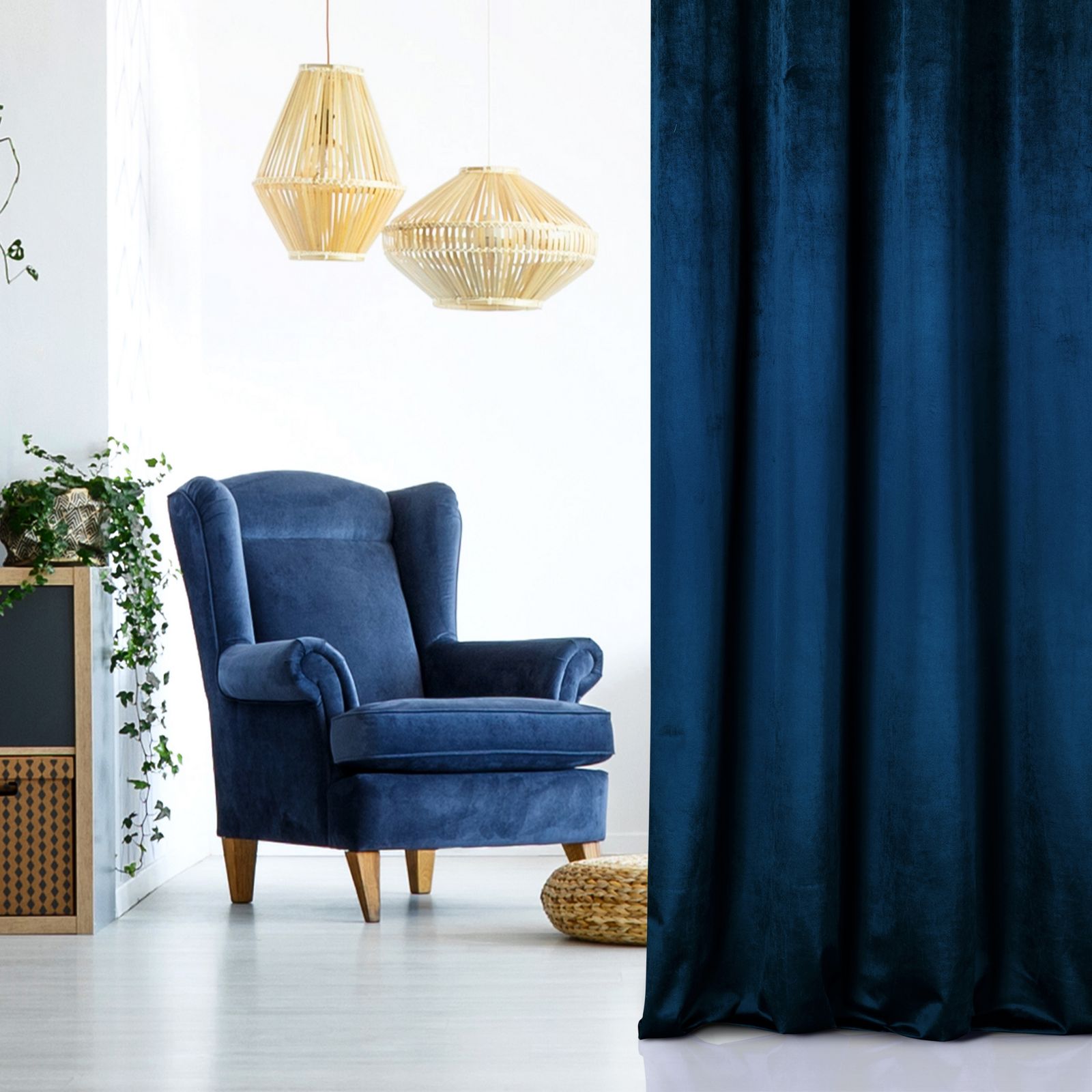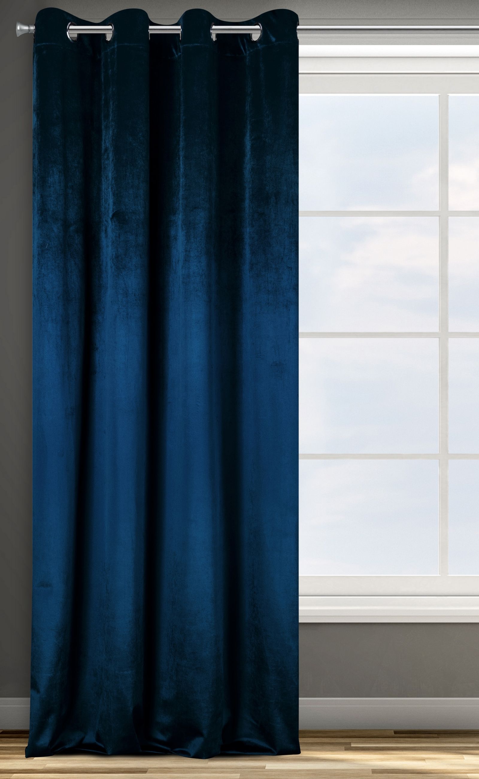 Biezs aizkars, kas izgatavots no gaļīga samta ar raksturīgi spīdīgu virsmu. Lieliski aizsargā no gaismas un maigi slāpē trokšņus telpā. Platums: 140 cm, garums: 250 cm, krāsa: tumši zila, svars: 190 GSM, sastāvs: Sastāvs: 100% poliesteris.