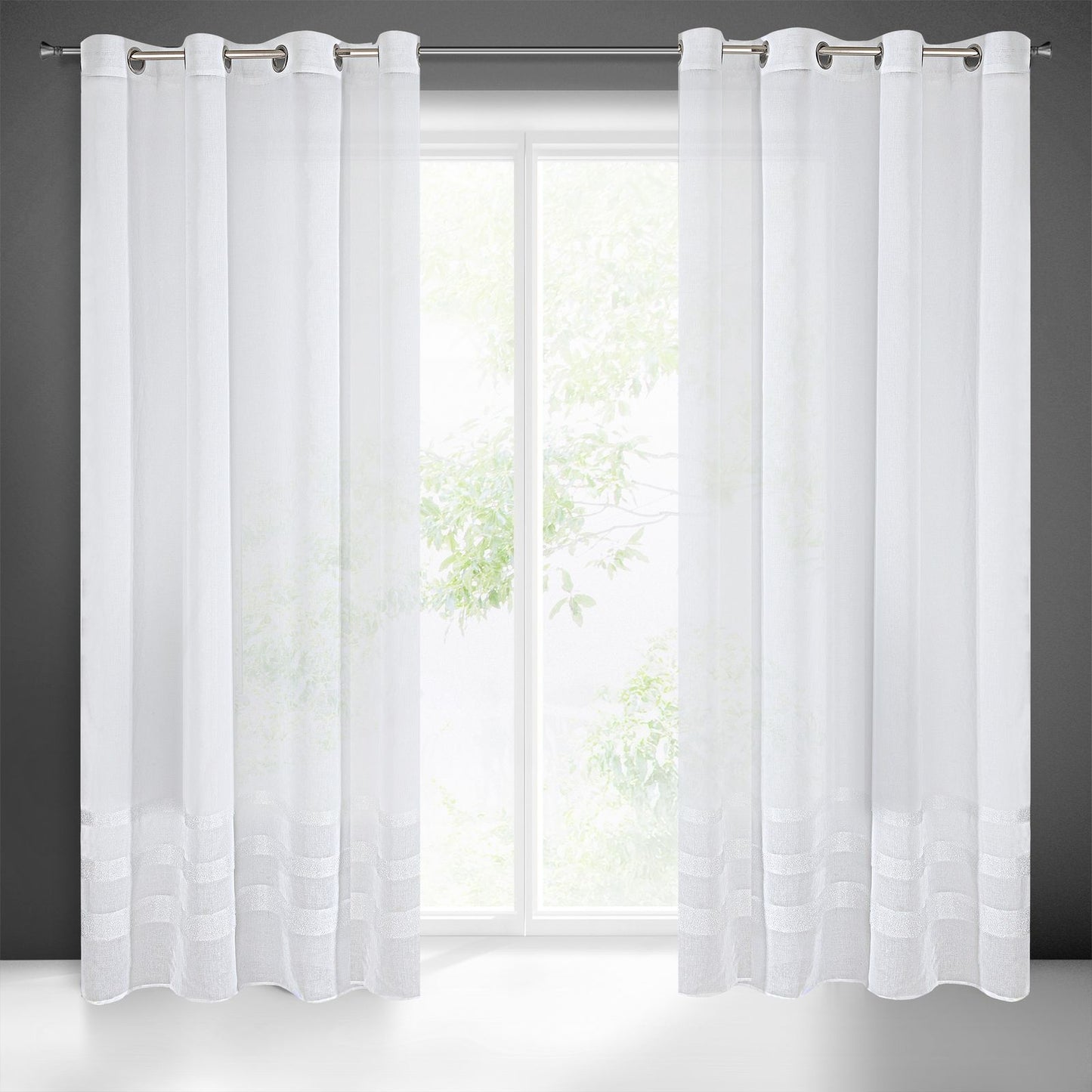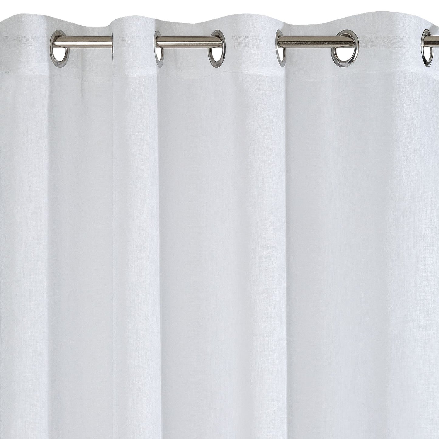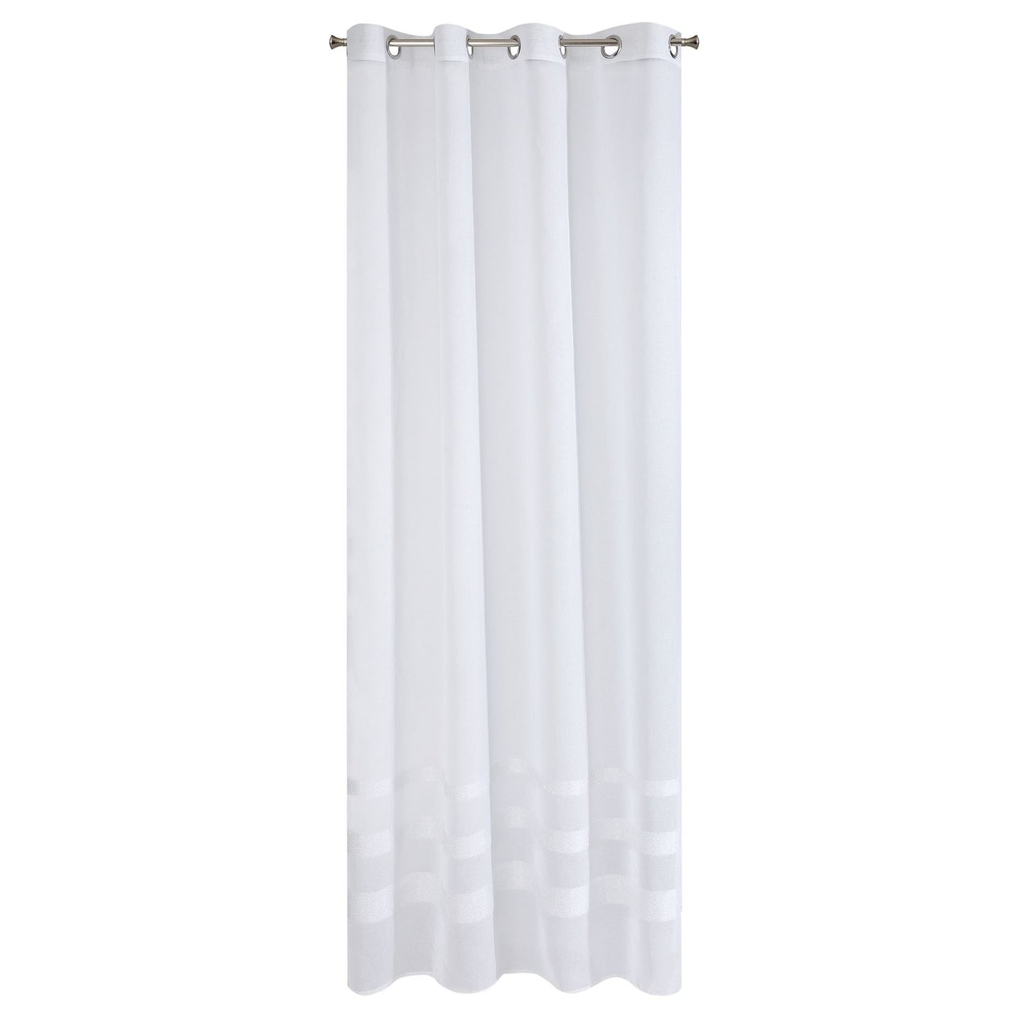 Vienkrāsains, gaisīgs aizkars, kas izgatavots no etamīna un apakšā rotāts ar horizontālām mohēras diegu lentēm. Ļoti viegls un vienkāršs. Viegli gludināms. Platums: 140 cm, garums: 250 cm, krāsa: balta, svars: 75 GSM, sastāvs: Sastāvs: 100% poliesteris.