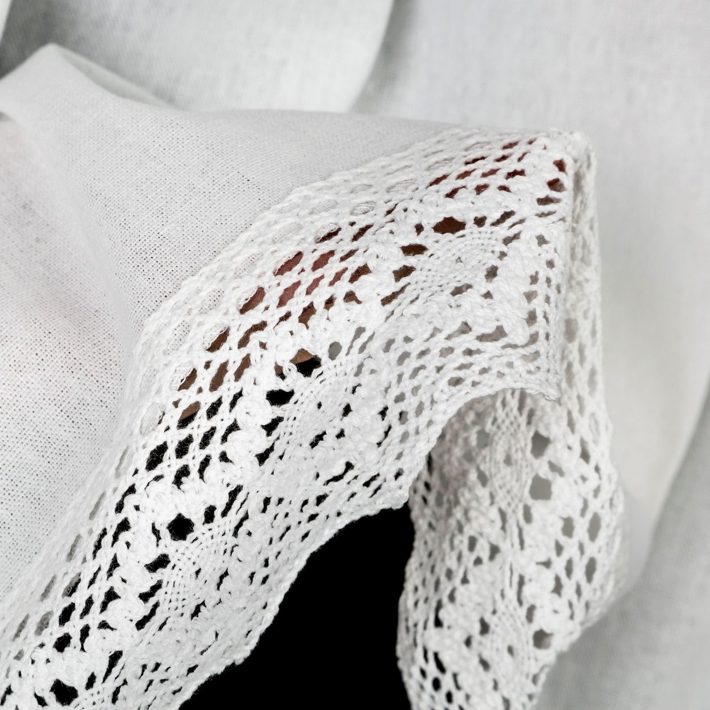 mežģīnēm rotāta gultas pārklāja platums: 150 cm, garums: 60 cm, krāsa: balta, svars: 180 GSM, sastāvs: Sastāvs: 60 % kokvilna, 40 % poliesteris