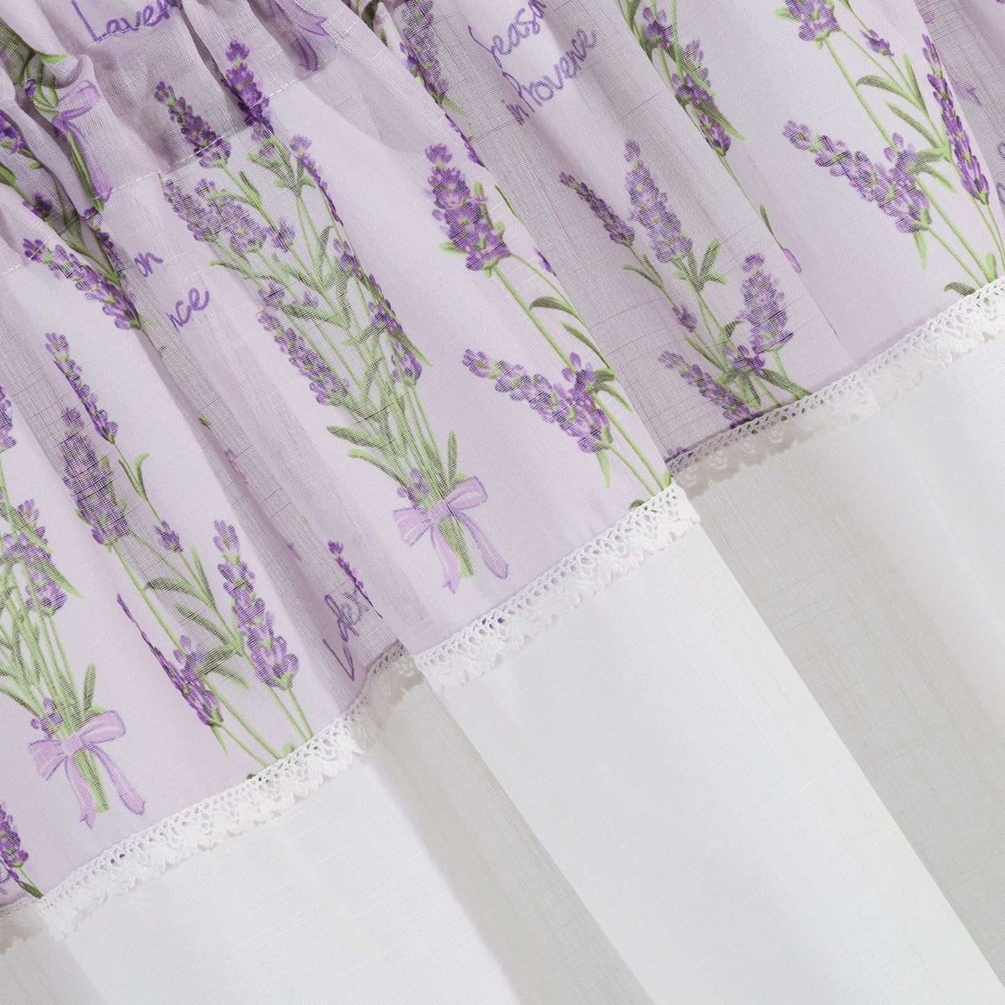 Tradicionāls gultas pārklājs mūsdienīgā formā. Plašo dekoratīvo joslu rotā lavandas ziedu raksts. Apakšējā daļa ir šūta no balta gluda auduma. platums: 150 cm, garums: 30 cm, krāsa: violeta, svars: 110 GSM, sastāvs: Sastāvs: 100% poliesteris.