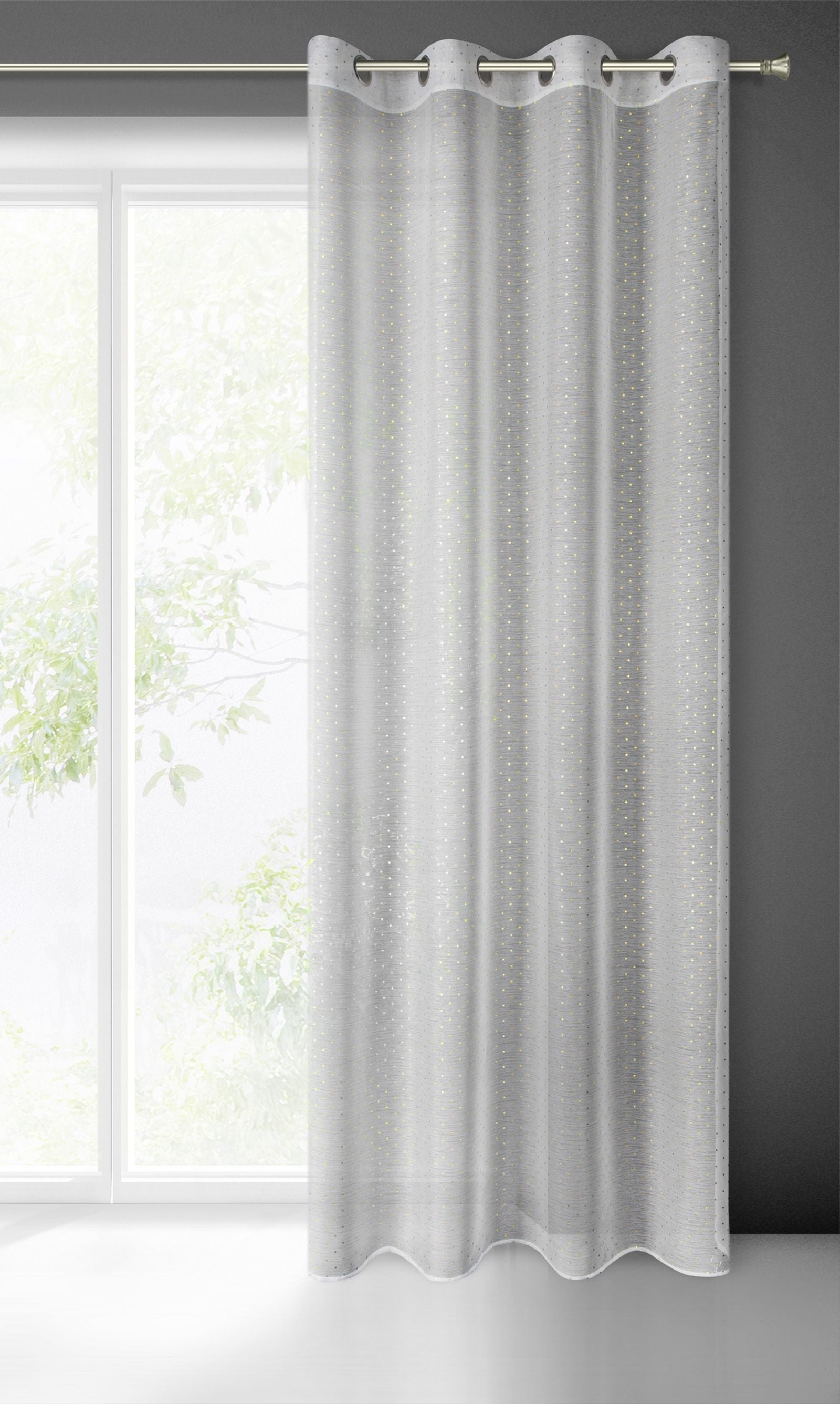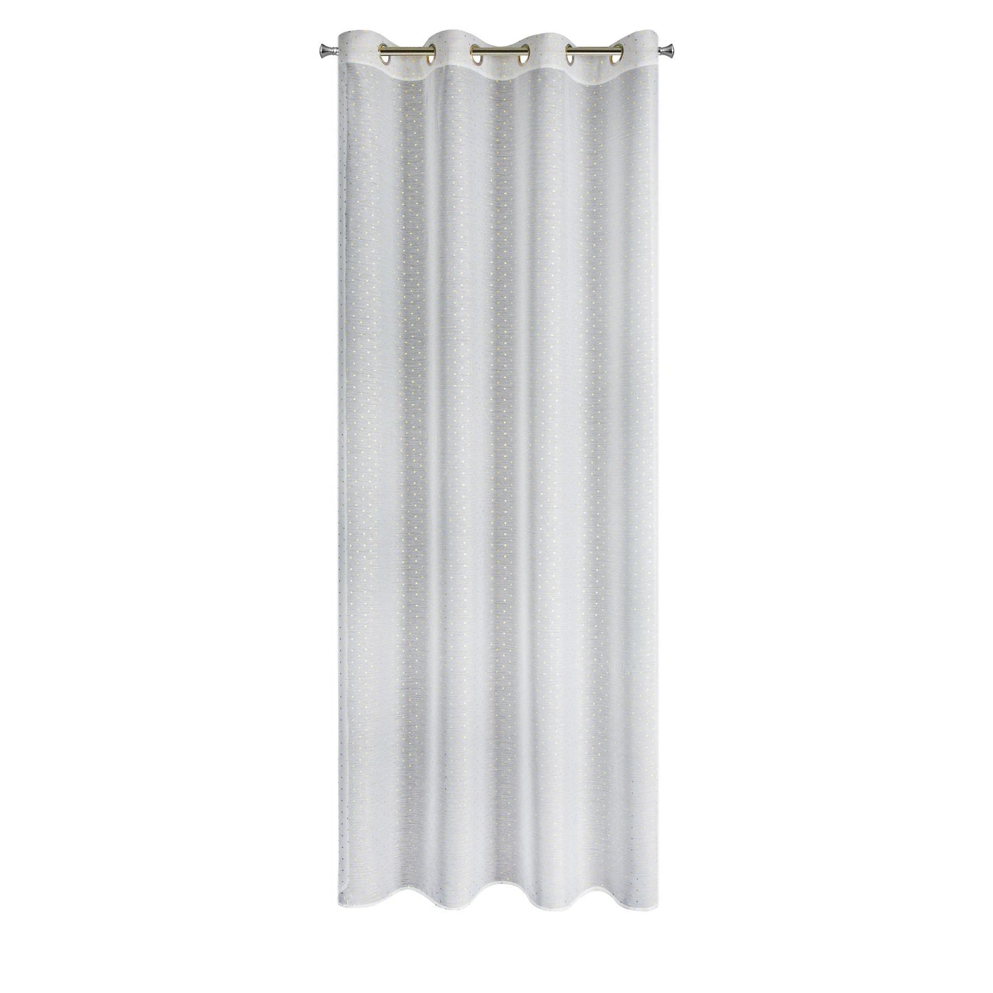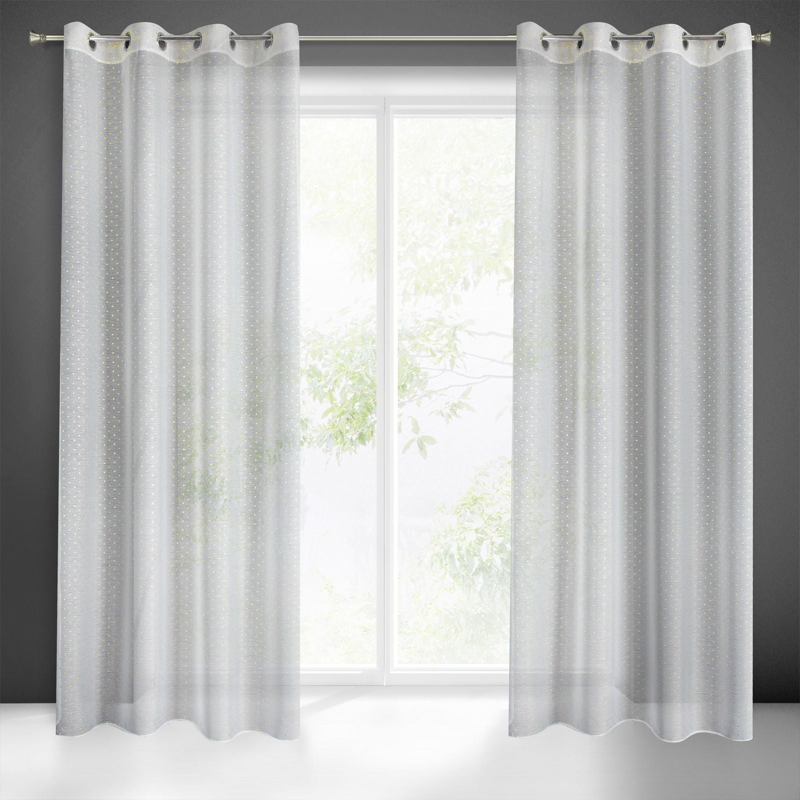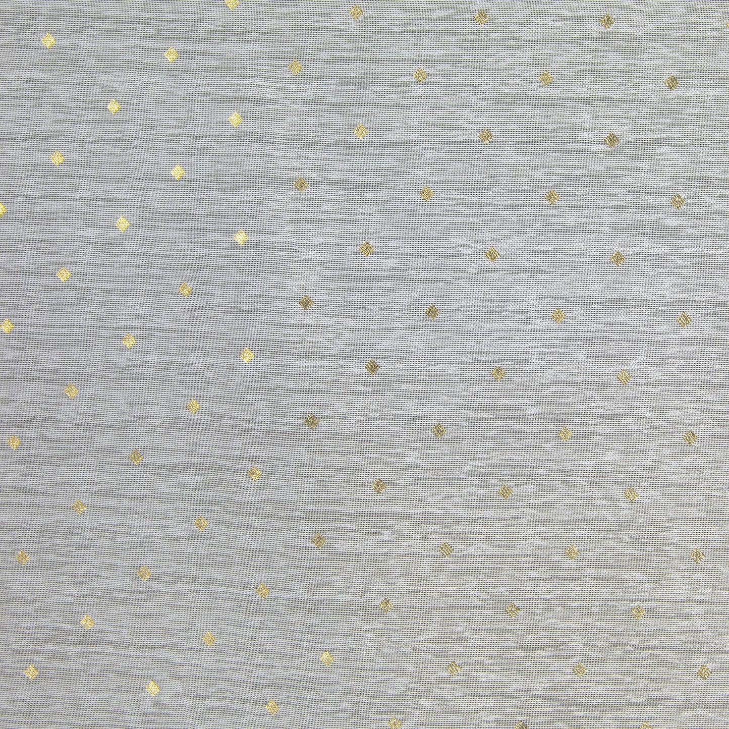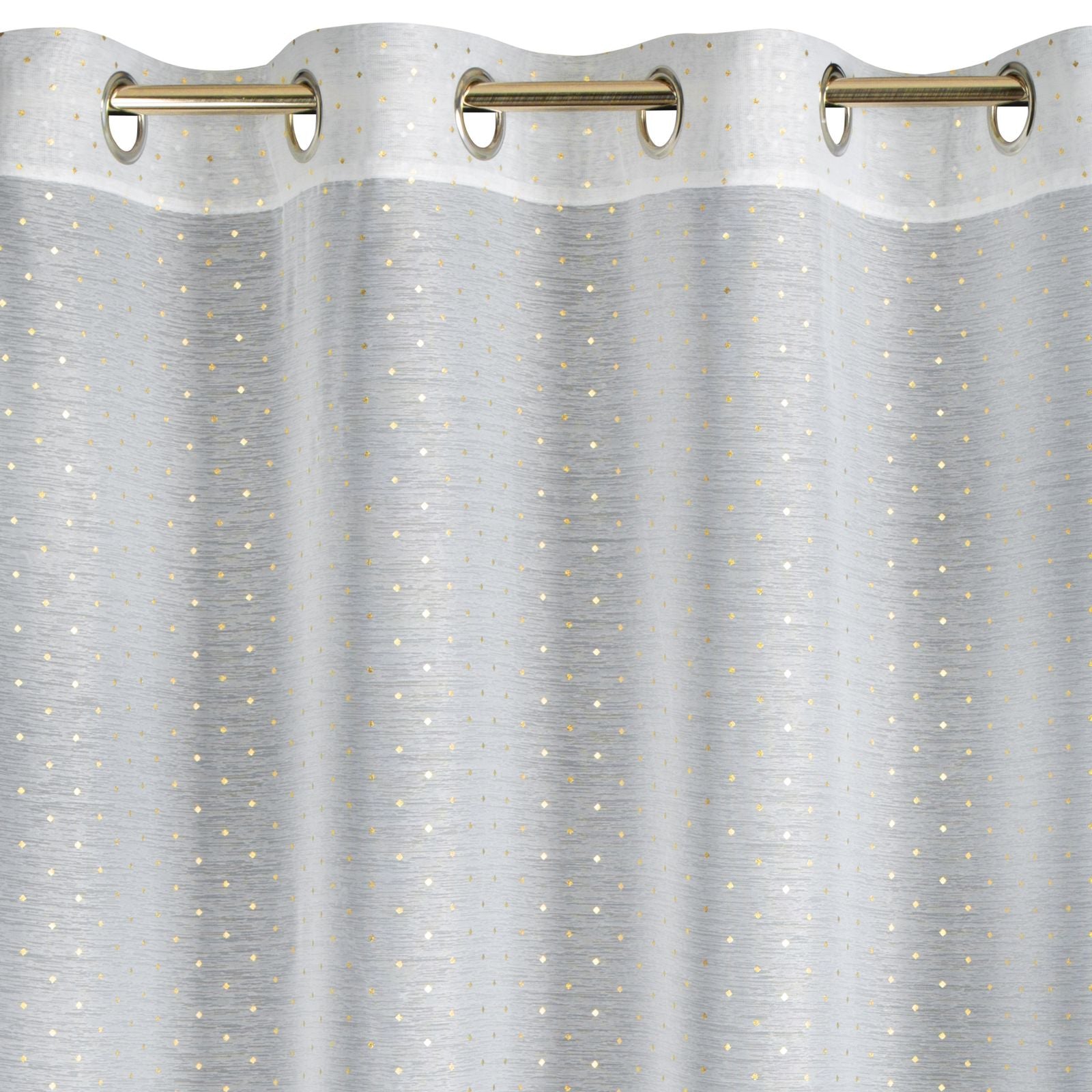 Mīksts aizkars, kas izgatavots no necaurspīdīga auduma un rotāts ar smalku zelta rombu apdruku. Lieliska gaismas izkliedēšana. Nepieciešama gludināšana kreisajā pusē. Platums: 140 cm, garums: 250 cm, krāsa: balta, svars: 50 GSM, sastāvs: Sastāvs: 100% poliesteris.