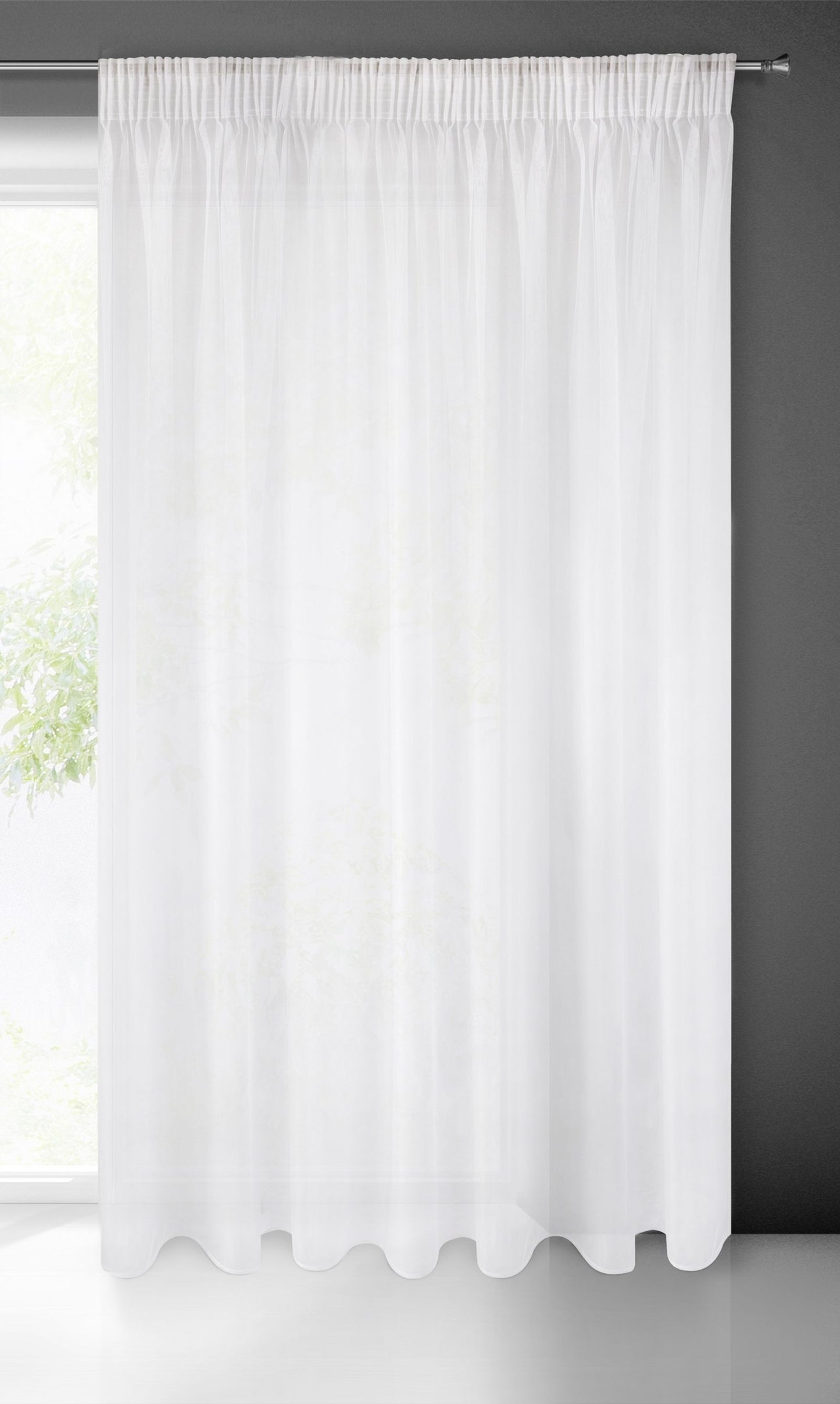 Gluds aizkars ar spīdumiem Platums: 135 cm, Garums: 270 cm, Krāsa: balta, Svars: 35 GSM, Sastāvs: Sastāvs: 100% poliesteris.