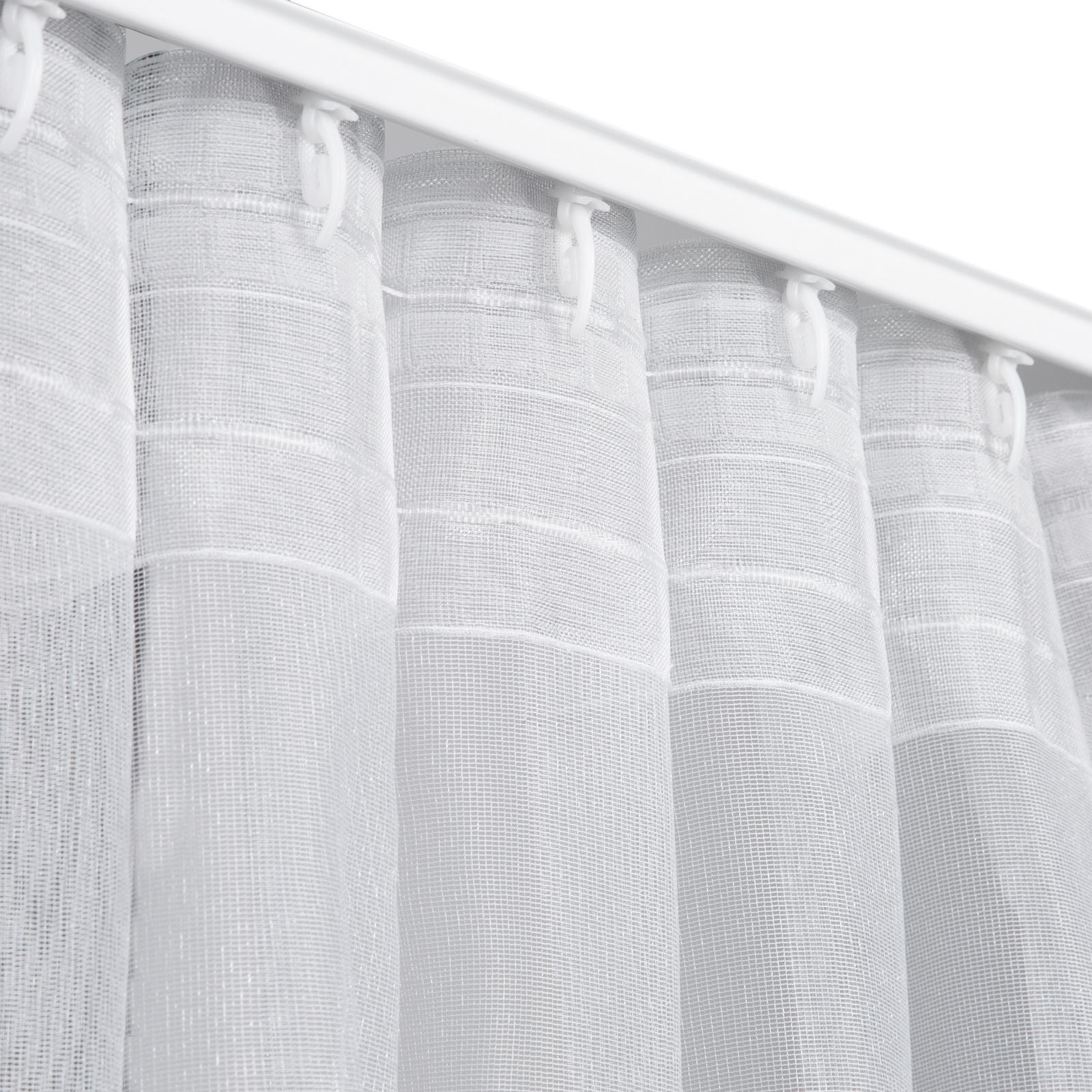 Ļoti maigs aizkars ar smalku, blīvu sieta struktūru. Spīdīgais audums garantē maksimālu privātuma sajūtu un ļauj interjerā ienākt gaismai. Platums: 140 cm, garums: 300 cm, krāsa: balta, svars: 35 GSM, sastāvs: Sastāvs: 100% poliesteris.