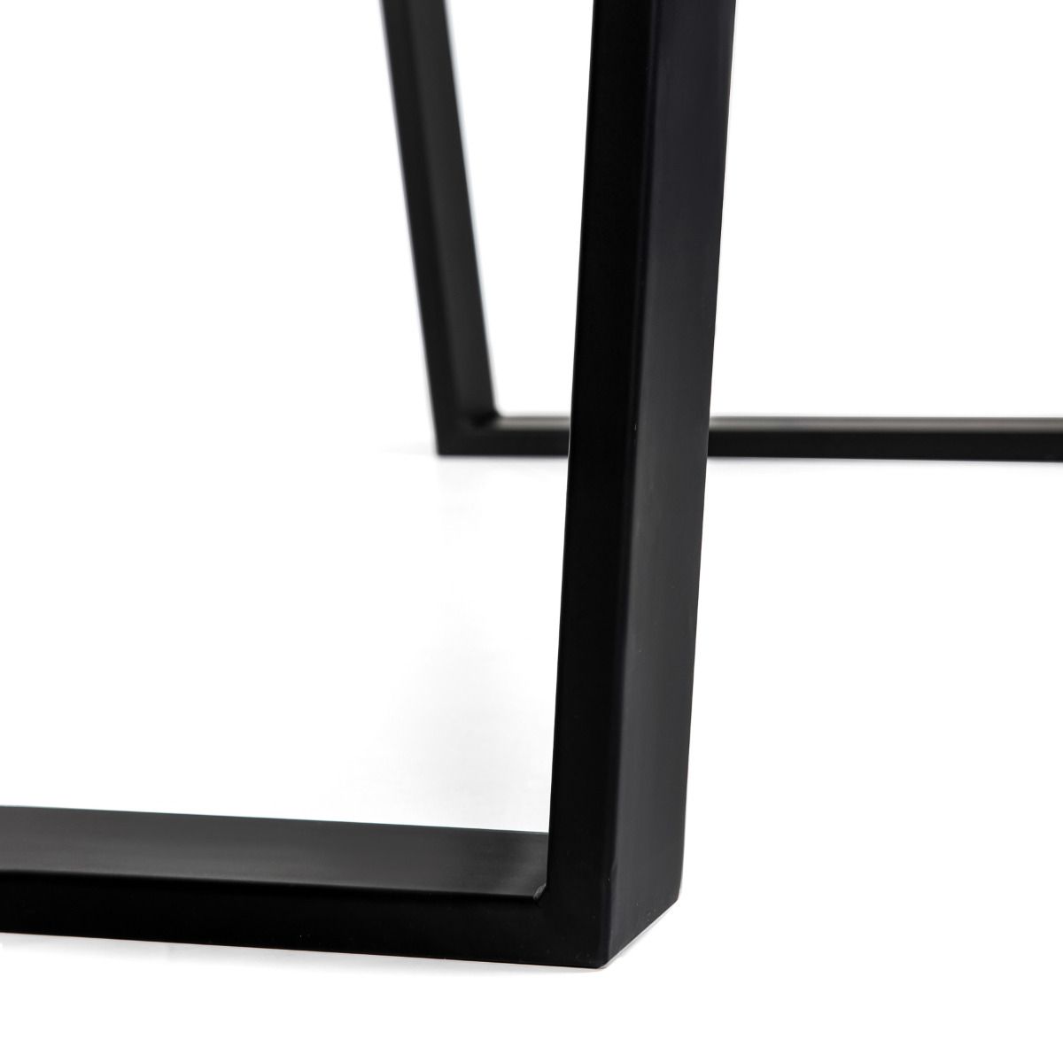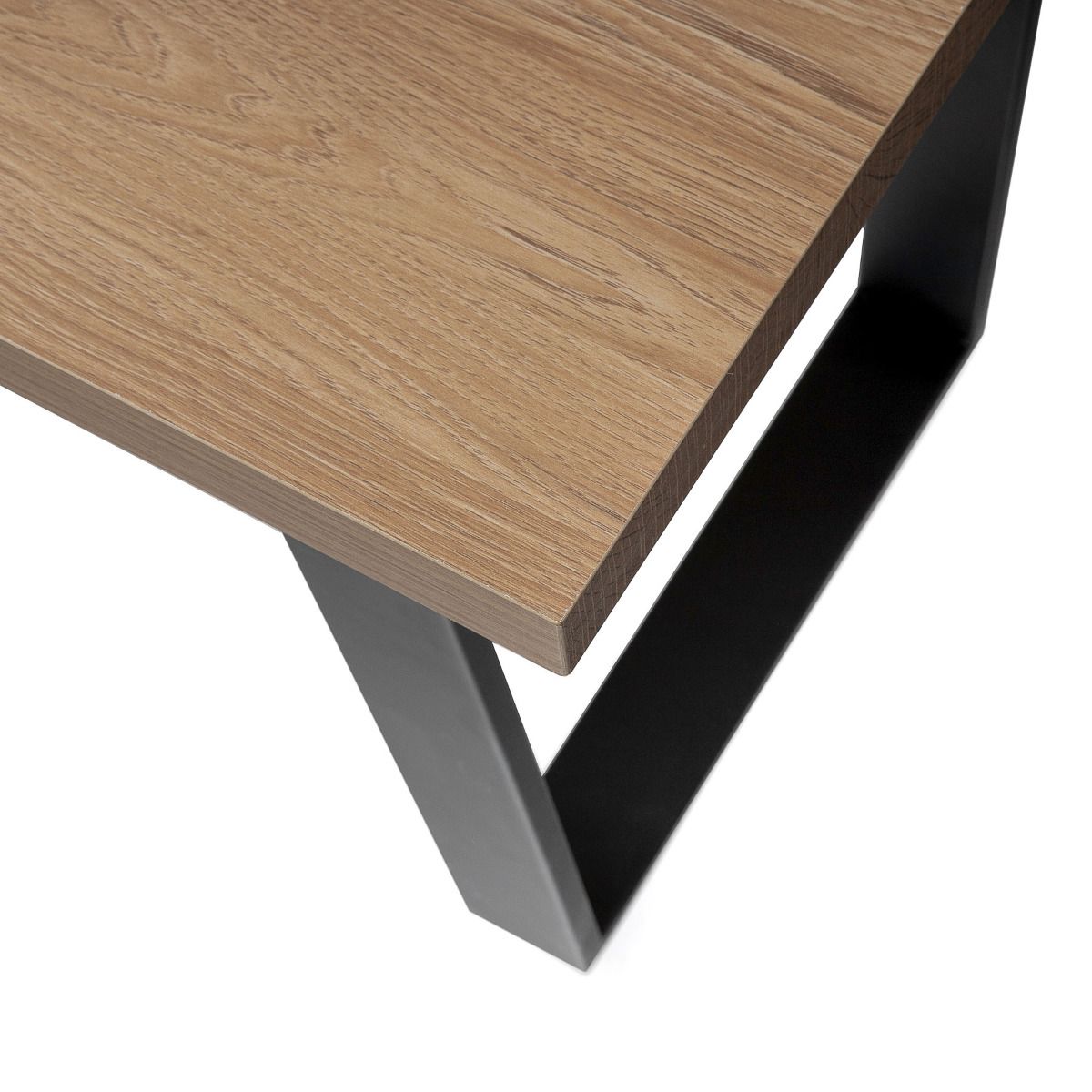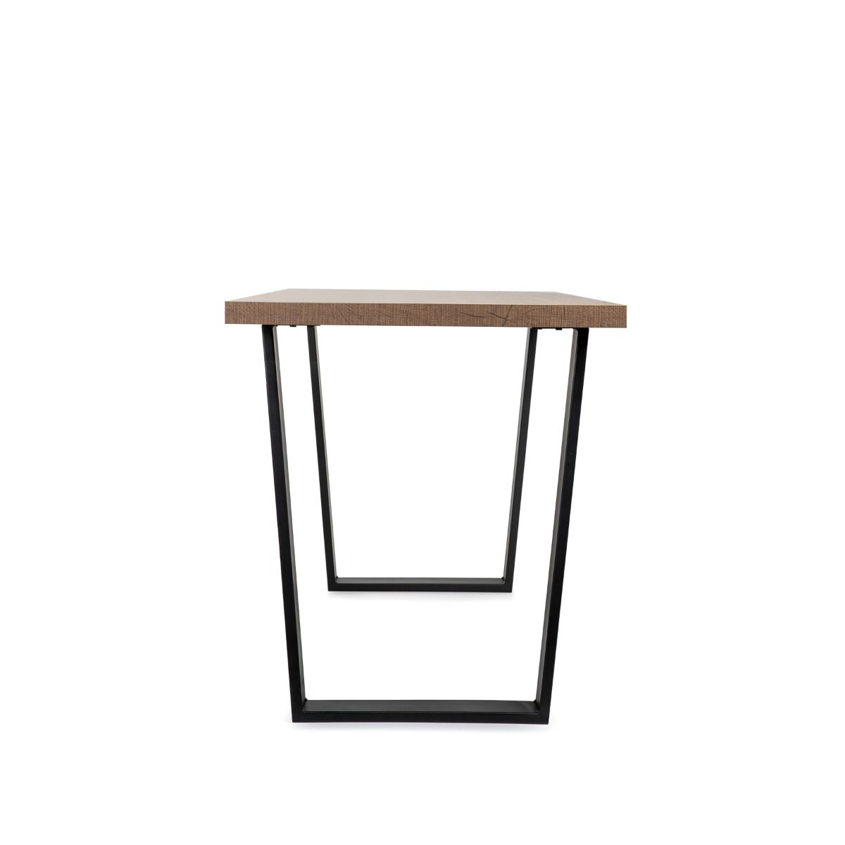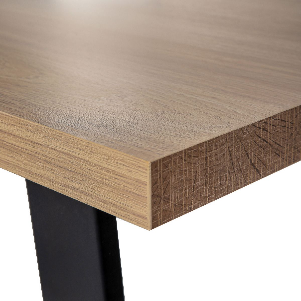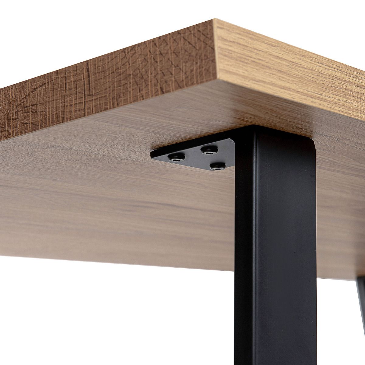 Lielais taisnstūrveida FANE augšdaļa noteikti ir produkta noteicošais elements. Stabilitāti nodrošina četras metāla kājas, kas papildus savienotas viena ar otru. Melnā un gaišā koka maisījums izskatās skaisti un piešķir jūsu interjeram unikālu stilu. Novietojiet uz tā savu iecienītāko augu vai citus sapņu rotājumus, un jūs noteikti izveidosit kaut ko unikālu. Galda izmēri ir 140 cm x 70 cm x 76 cm.