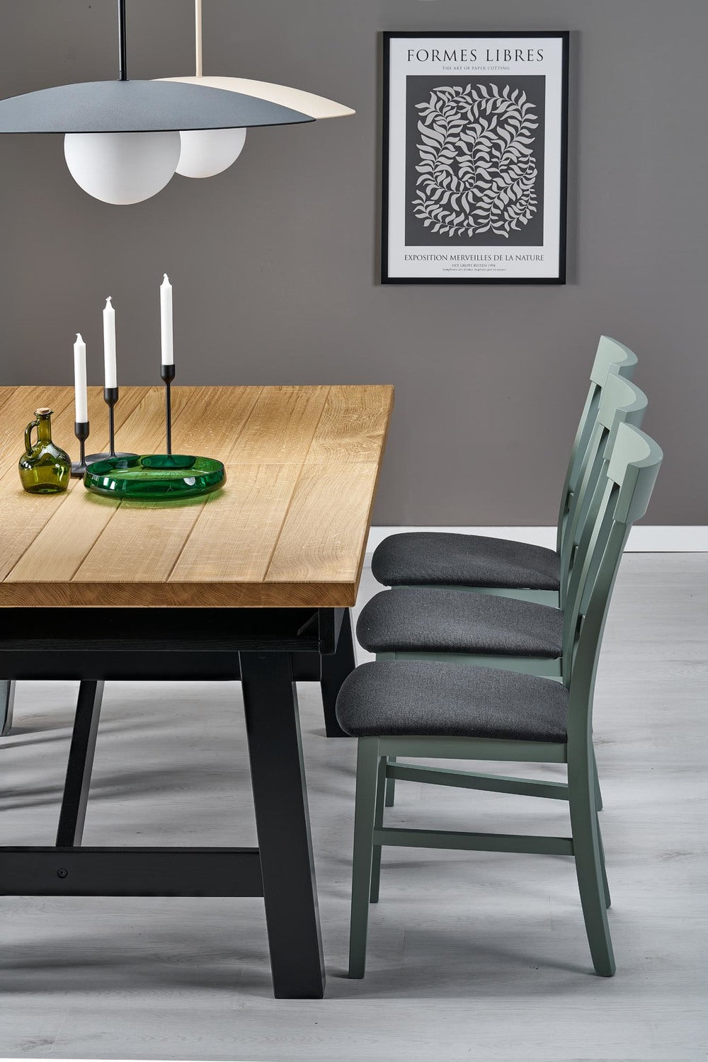 materiāls: virsma - MDF + 5 mm ozolkoka lameles, masīvkoks malās,
