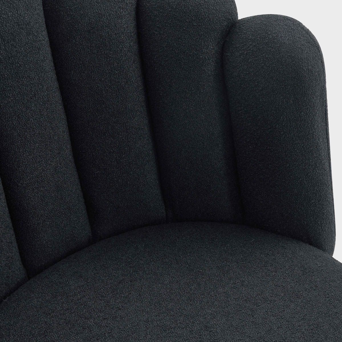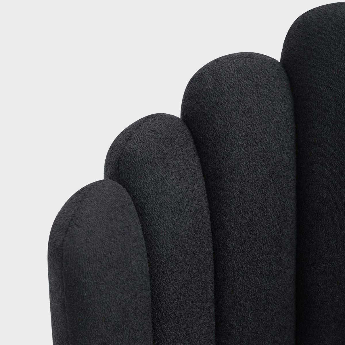 Krēsls ir apvilkts ar augstas kvalitātes, mīkstu un pieskārienam patīkamu audumu. Izturīgas, melnas kājas nodrošina izturību un stabilitāti.