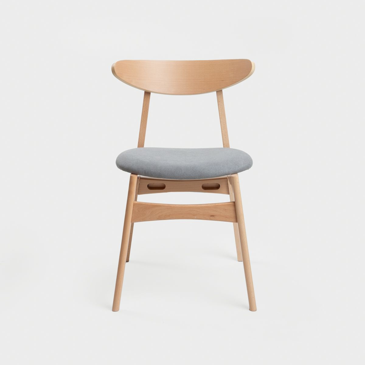 Materiāls Krēsls ir izgatavots no augstas kvalitātes dižskābarža koka, nodrošinot izturību un stabilitāti. Polsterētais pelēkais sēdeklis ir ne tikai estētiski pievilcīgs, bet arī ērts un viegli tīrāms, padarot to par ideālu izvēli ikdienas lietošanai. Papildinformācija Svars: 5,25 kg Augstums no zemes līdz sēdeklim: 45 cm