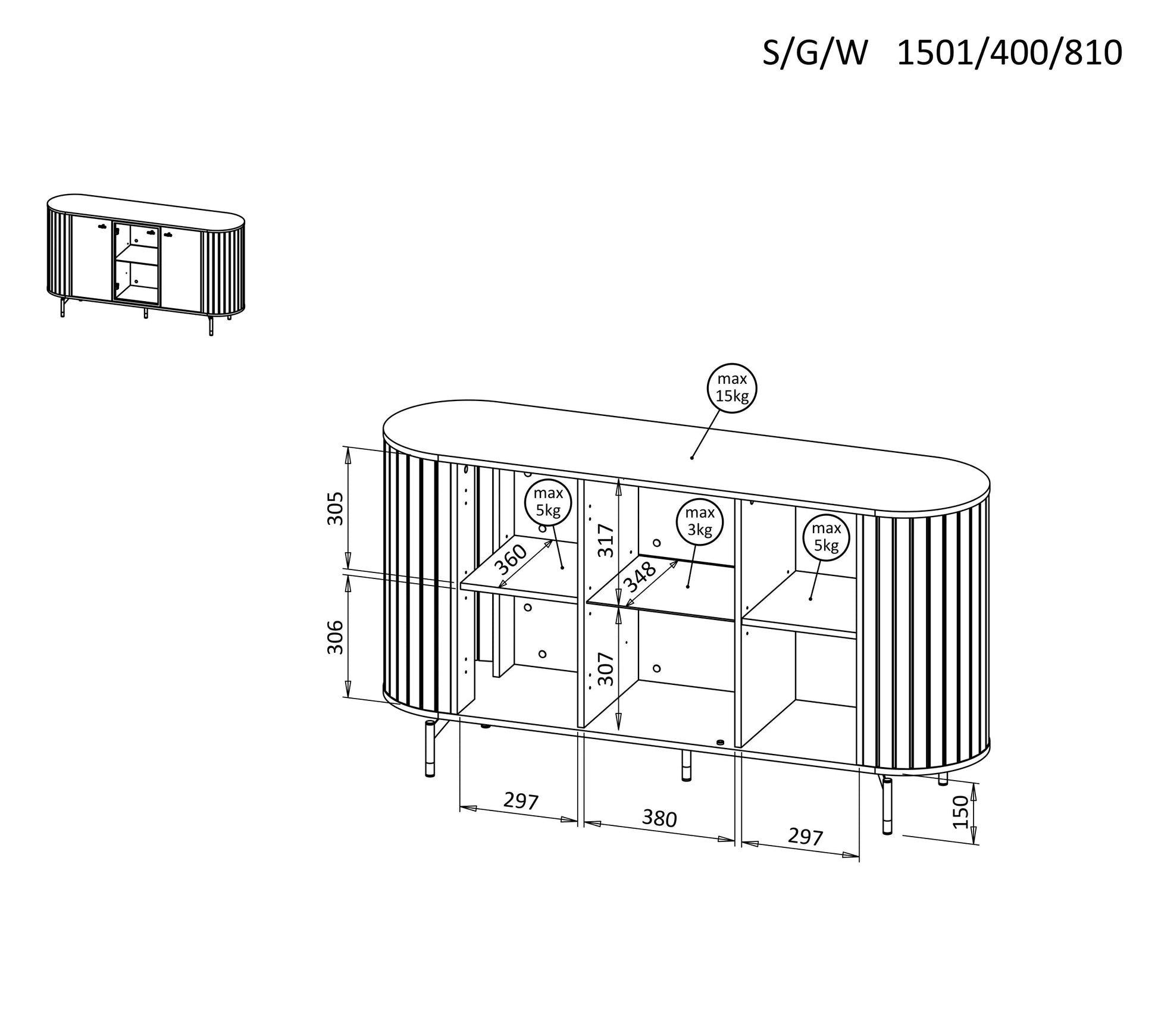 Kumode Zanto A 150/40/81 cm melns