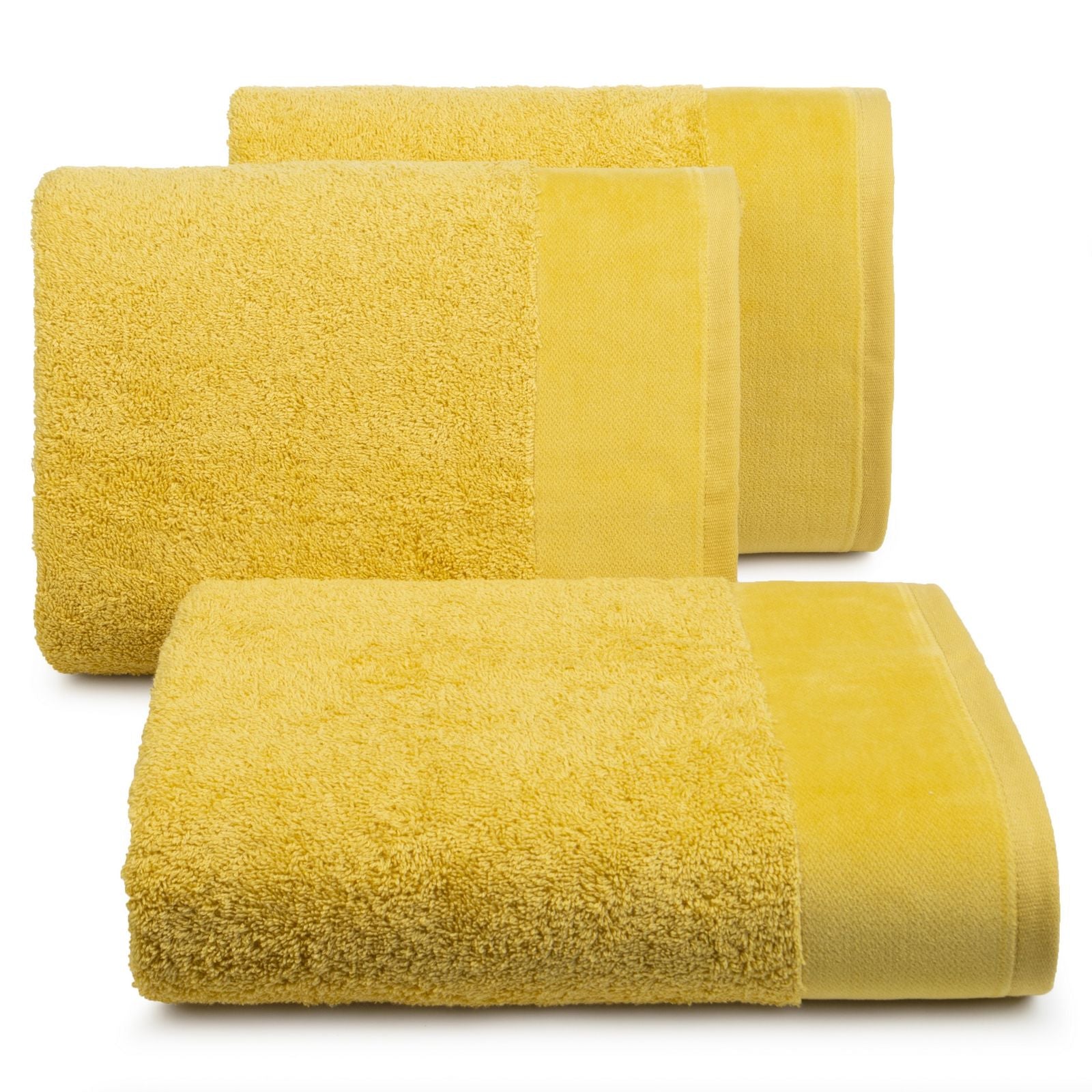 Dvieļa ar šenila apmali platums: 70 cm, garums: 140 cm, krāsa: sinepju, svars: 500 GSM, sastāvs: Sastāvs: 100% kokvilna; 98% kokvilna 2% poliesteris