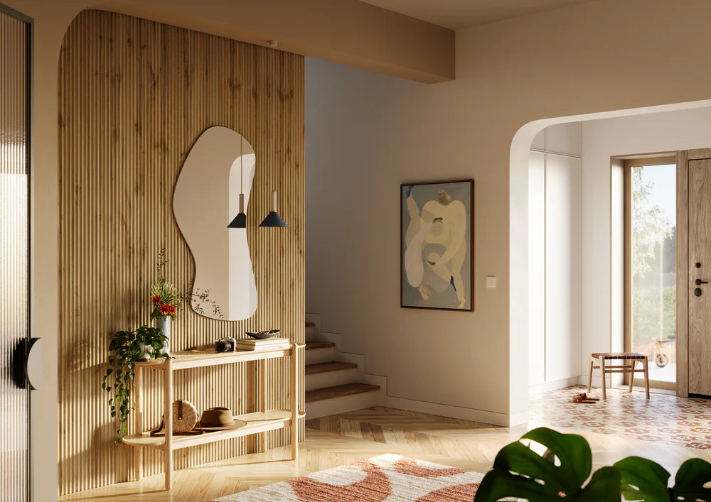 Organiskās līnijas ienes mieru un harmoniju, radot unikālu efektu, kas piesaista uzmanību un piešķir telpai izsmalcinātu stilu.