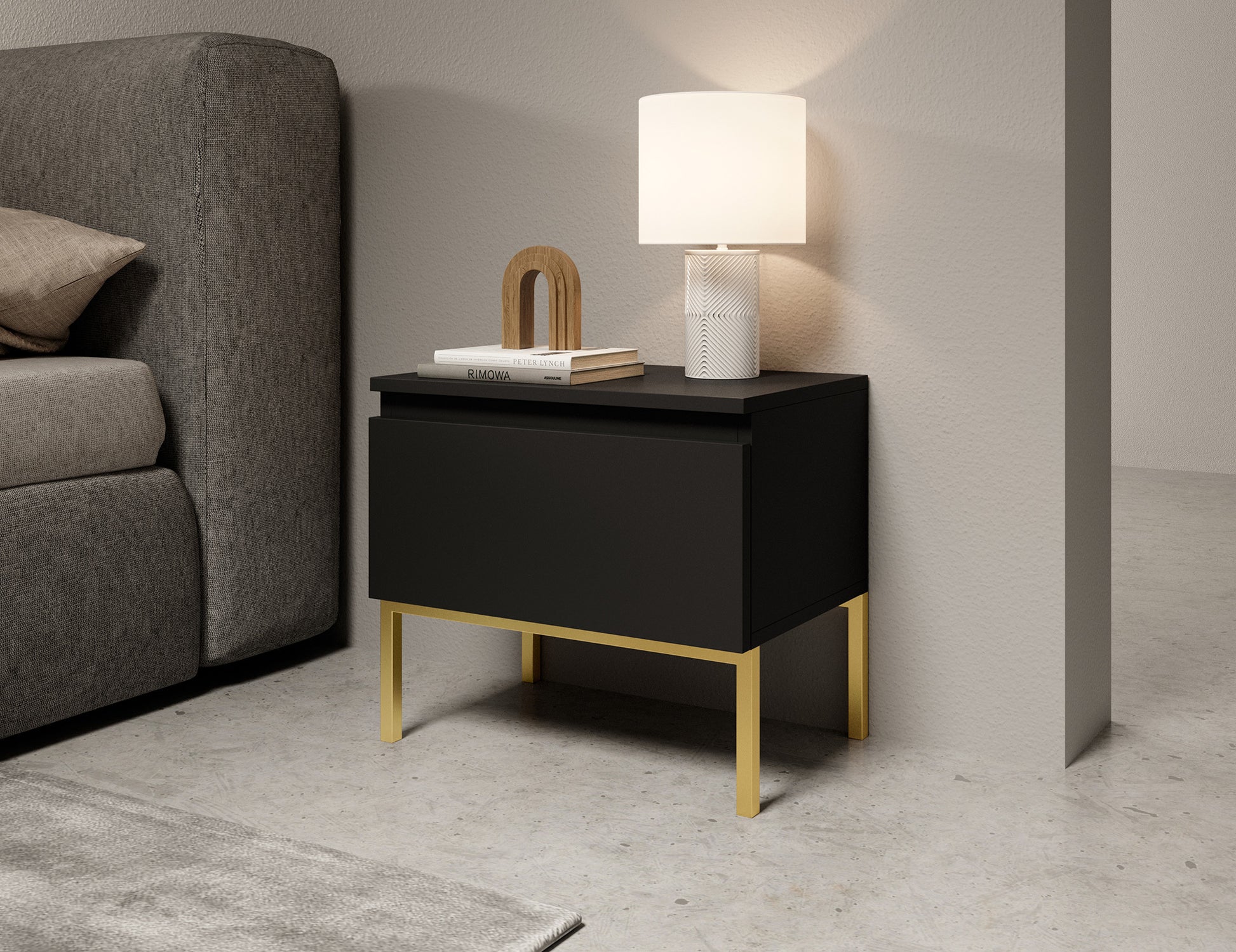 Naktsgaldiņš Bommo 43/49/32 cm melns/zelts