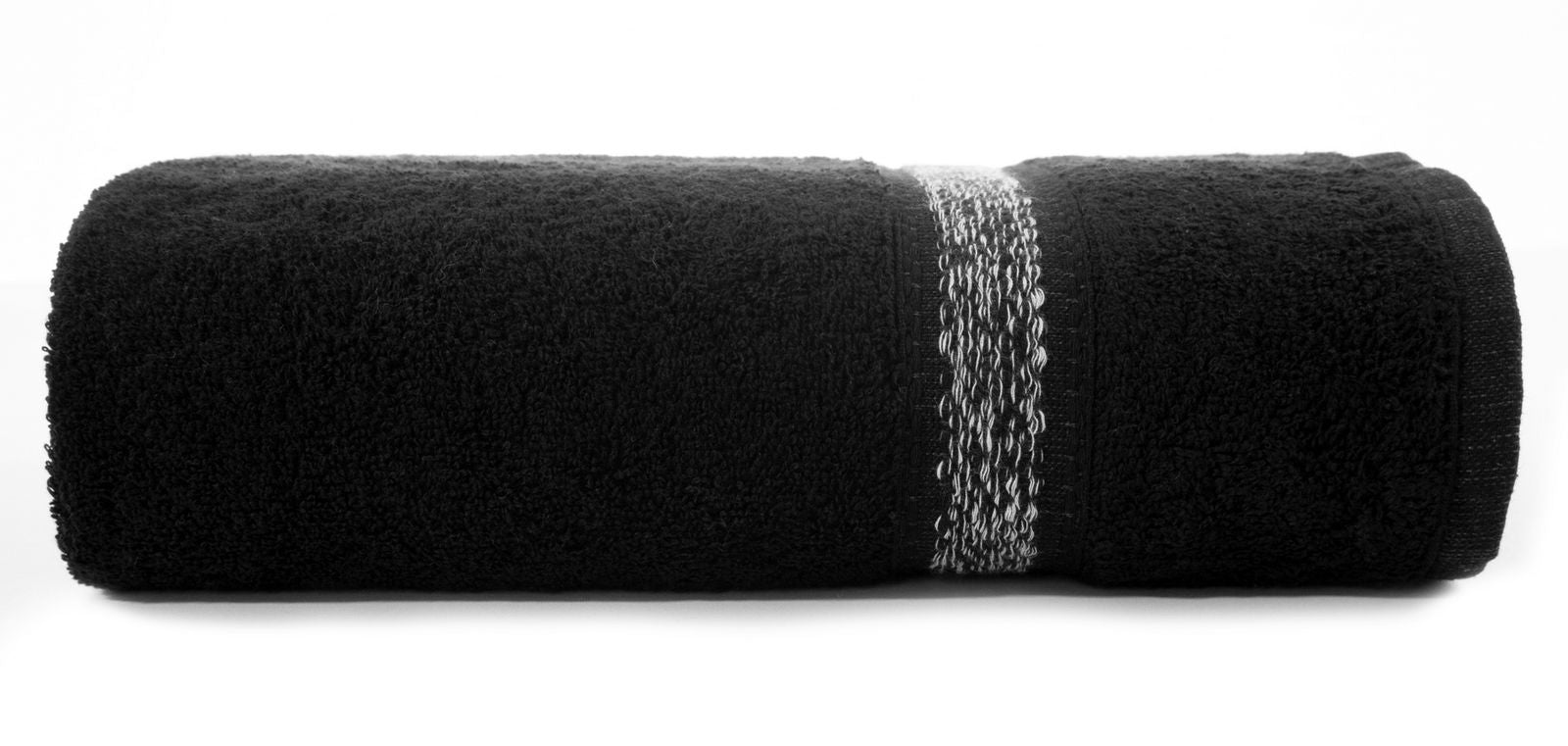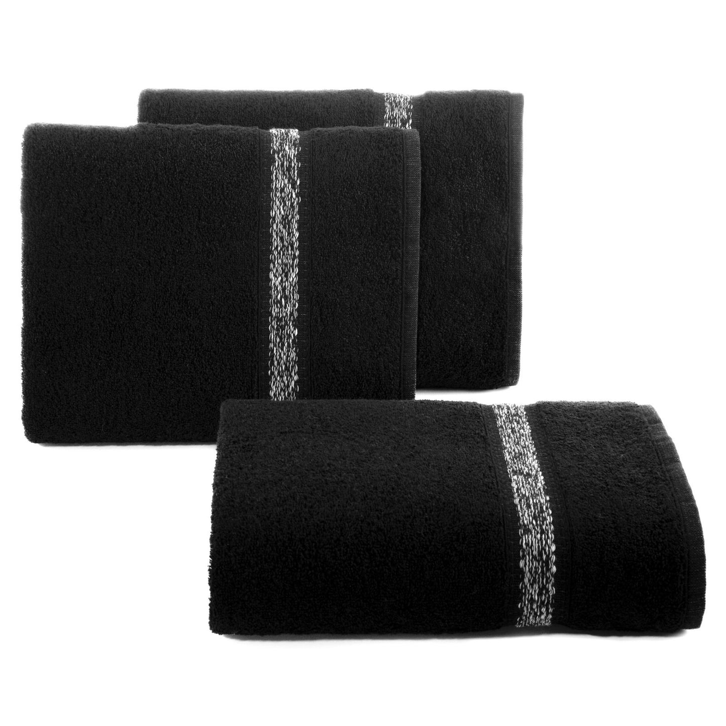 Dvieļu ar dekoratīvu malu ar melanžētu svītru platums: 70 cm, garums: 140 cm, krāsa: melna, svars: 500 GSM, sastāvs: Sastāvs: 100% kokvilna; 97% kokvilna, 3% poliesters