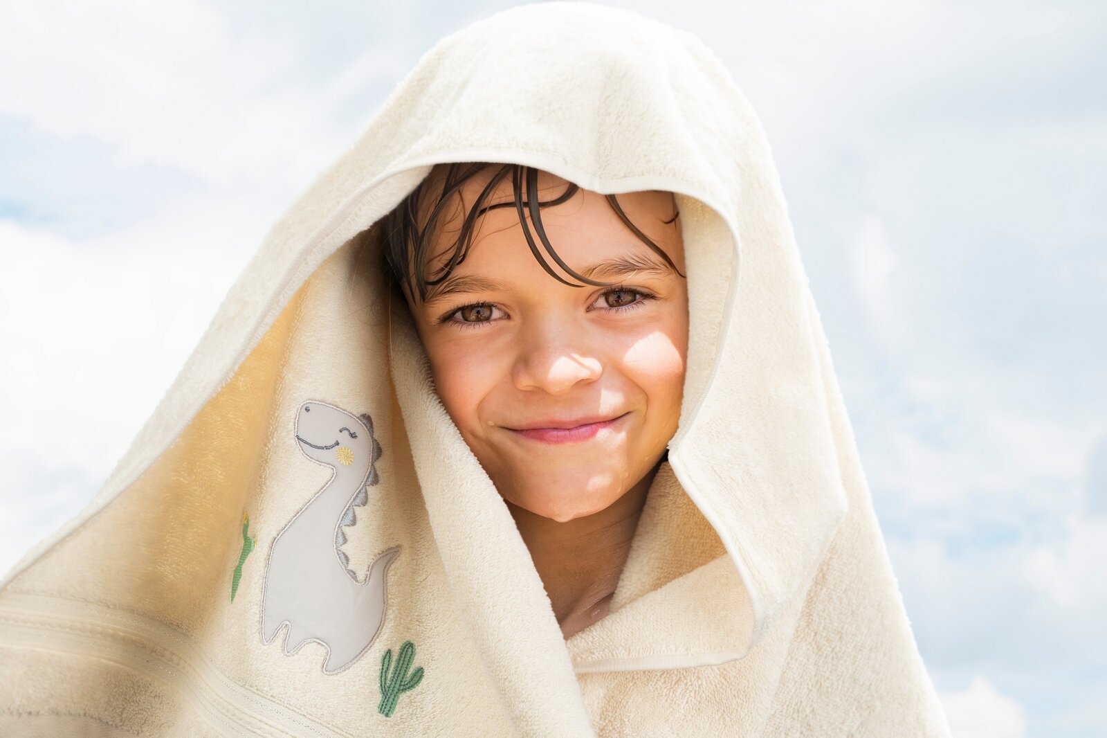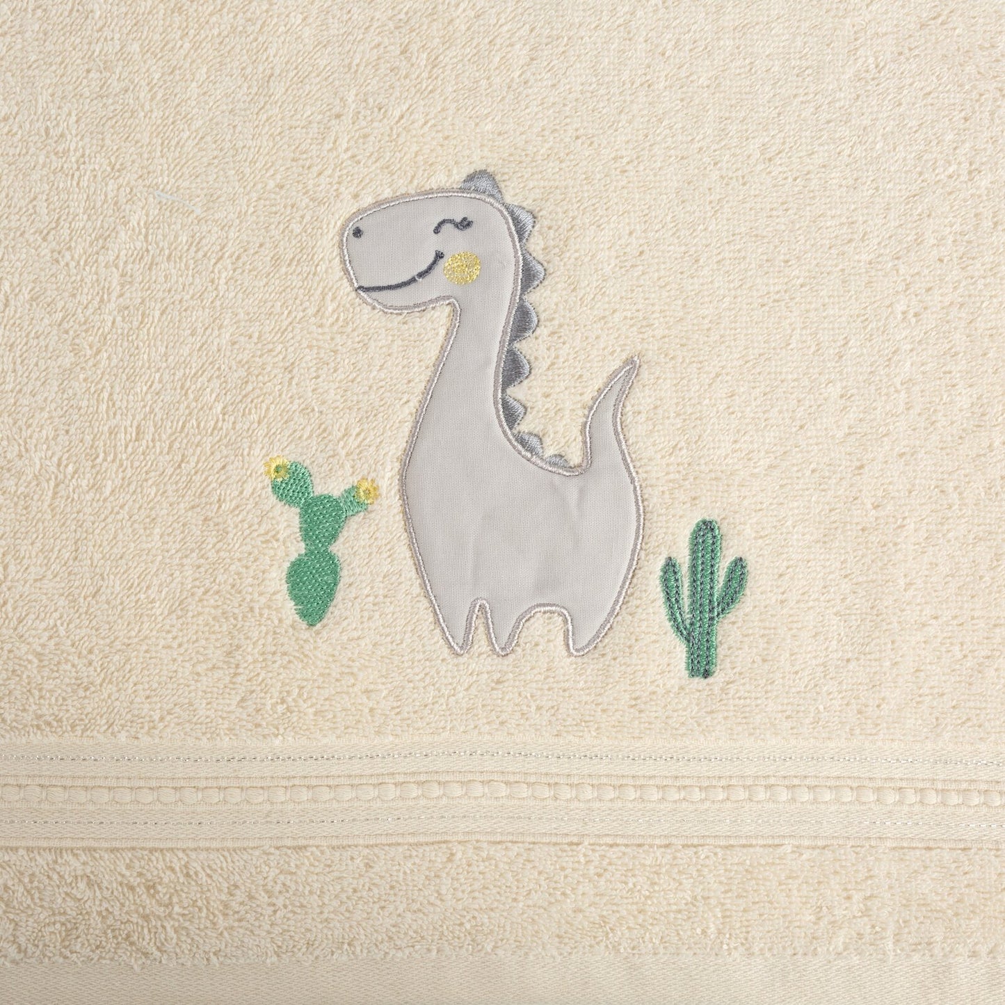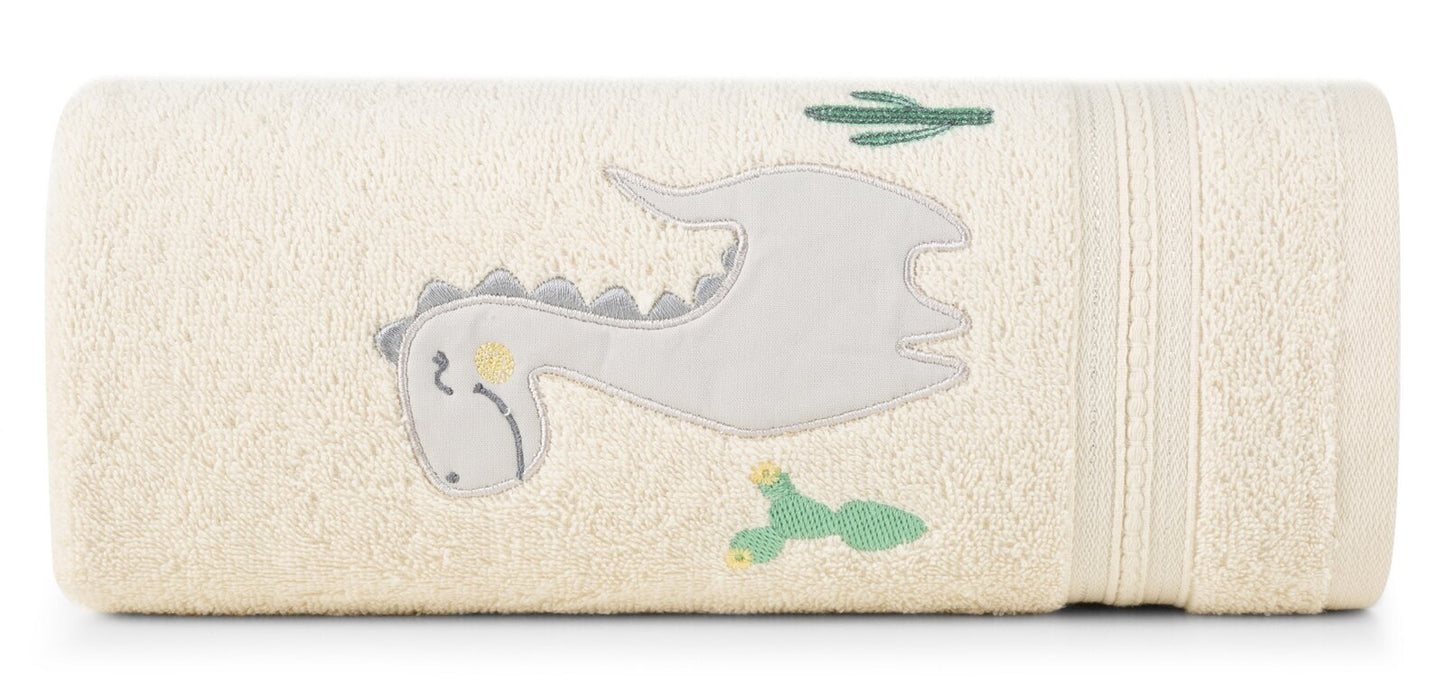 Mīksts un ļoti maigs bērnu vannas dvielis, kas izgatavots no absorbējoša dabīgas kokvilnas frotē auduma. Ar aplikāciju rotāto dvieli ir viegli mazgājams. Platums: 50 cm, garums: 90 cm, krāsa: krēmkrāsa, svars: 450 GSM, sastāvs: Sastāvs: 100% kokvilna.