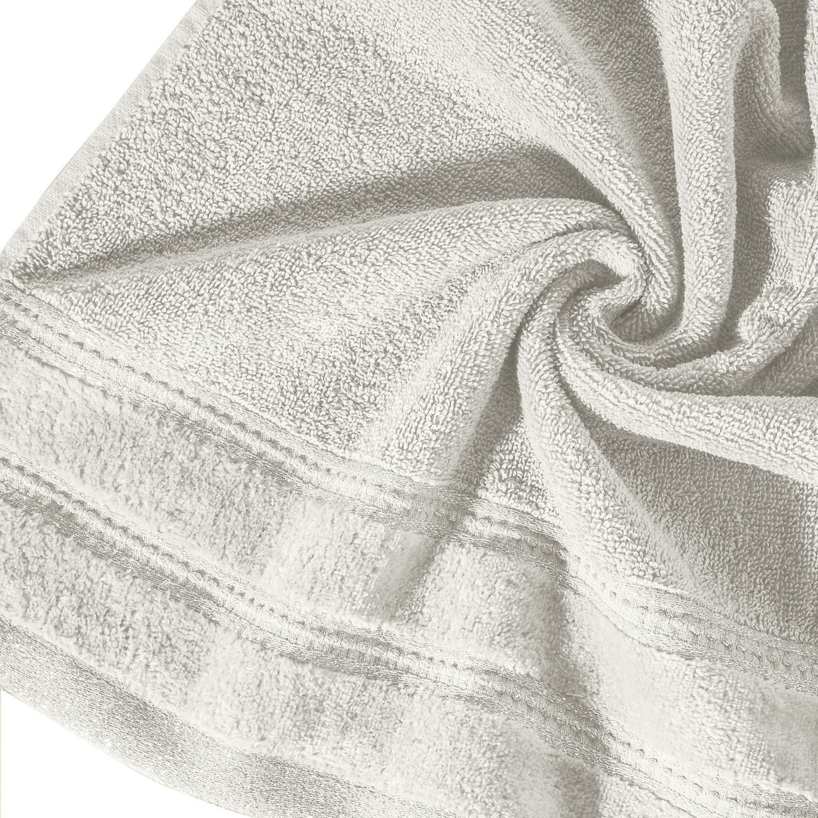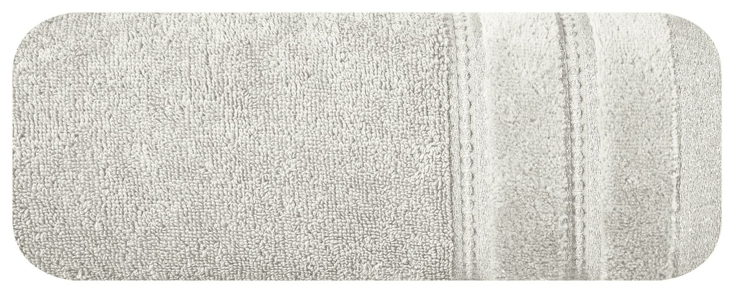 Klasisks vannas dvielis no uzsūcoša kokvilnas frotē auduma. Minimālistiska velūra apmale ar spīdīgu metālisku pavedienu. Platums: 70 cm, garums: 140 cm, krāsa: bēša, svars: 500 GSM, sastāvs: Sastāvs: 100% kokvilna; 99,6% kokvilna, 0,4% metālisks pavediens.