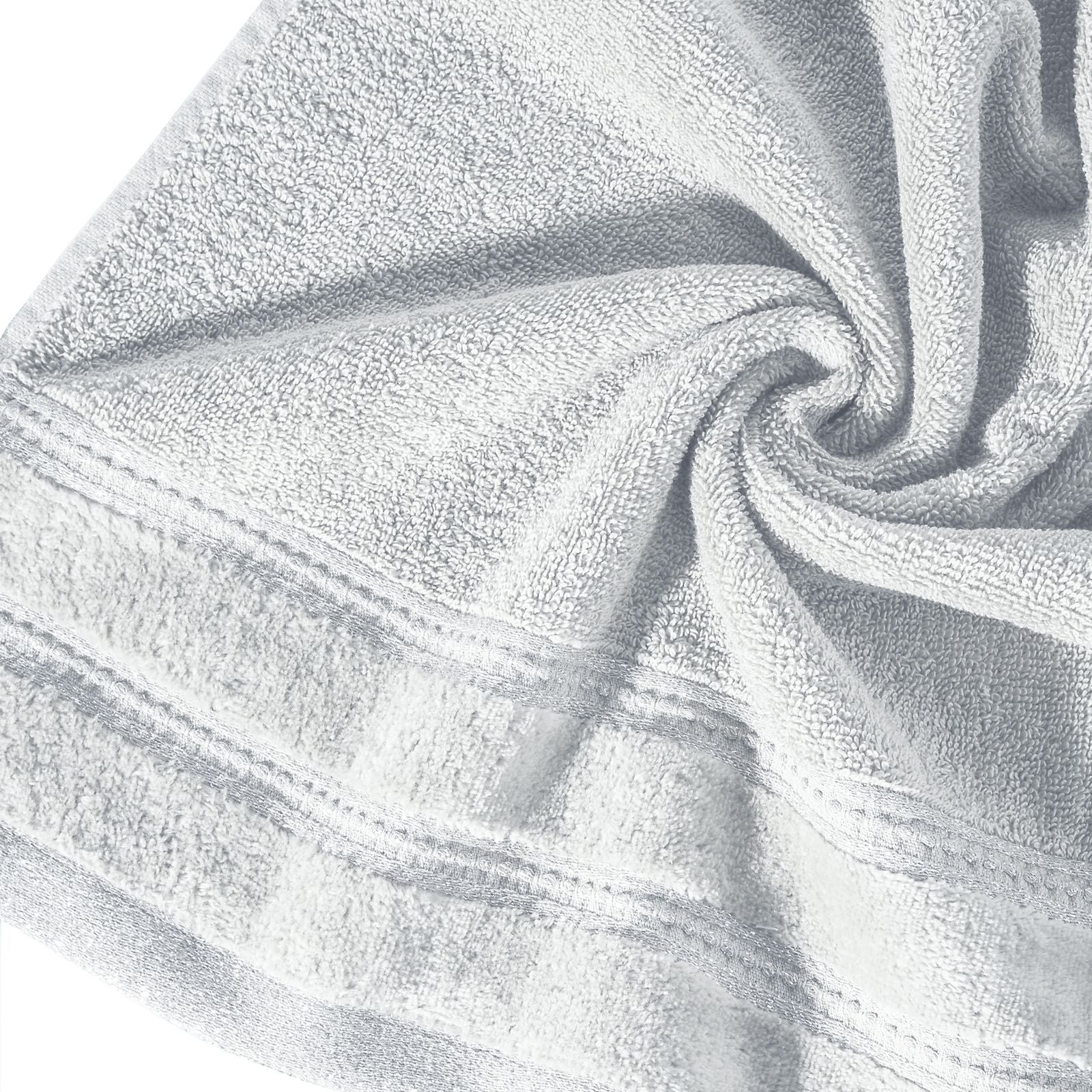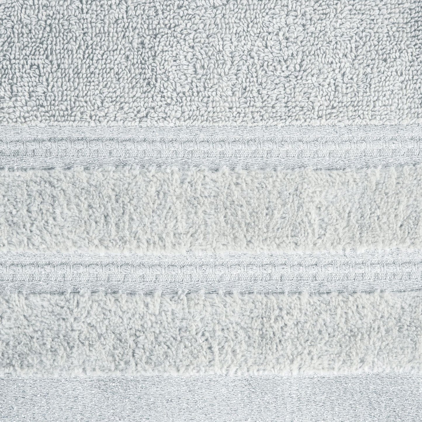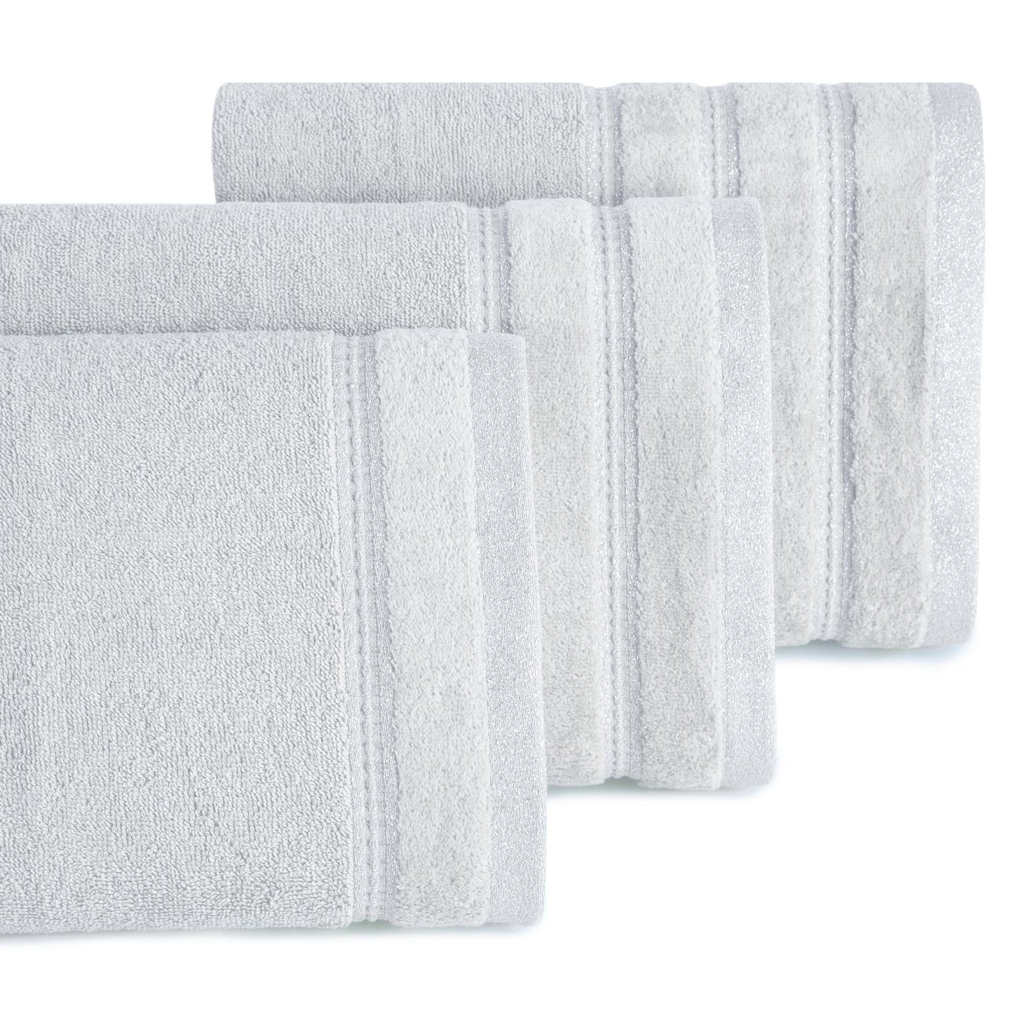 Klasisks vannas dvielis no uzsūcoša kokvilnas frotē auduma. Minimālistiska velūra apmale ar spīdīgu metālisku pavedienu. Platums: 70 cm, garums: 140 cm, krāsa: sudraba, svars: 500 GSM, sastāvs: Sastāvs: 100% kokvilna; 99,6% kokvilna, 0,4% metālisks pavediens.