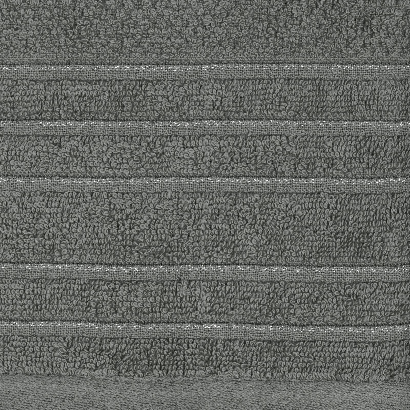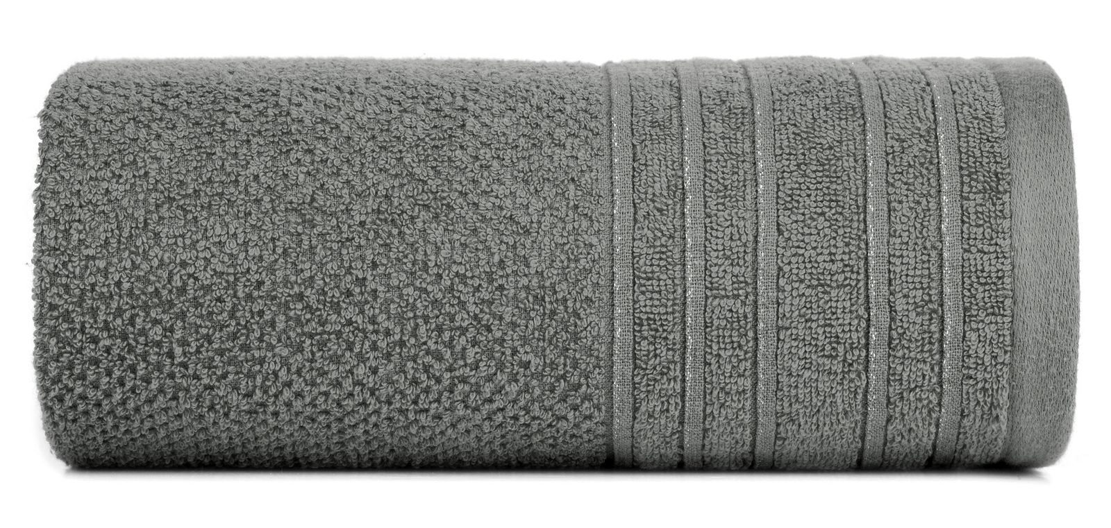 Klasisks vannas dvielis no uzsūcoša kokvilnas frotē auduma. Minimālistiska velūra apmale ar spīdīgu metālisku pavedienu. Platums: 70 cm, garums: 140 cm, krāsa: tērauda, svars: 500 GSM, sastāvs: Materiāls: 100% kokvilna; 80% metālisks diegs, 20% kokvilna.