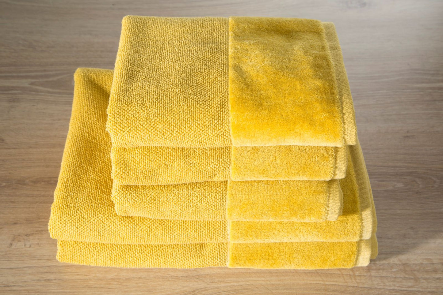 Mīksts un ļoti pūkains vannas dvielis ar minimālisma stila sajūtu. Plašais samta apmale piešķir vieglu spīdumu. Absorbējoša kokvilna nekrāso Platums: 70 cm, garums: 140 cm, krāsa: sinepju, svars: 500 GSM, sastāvs: Sastāvs: 100% kokvilna.