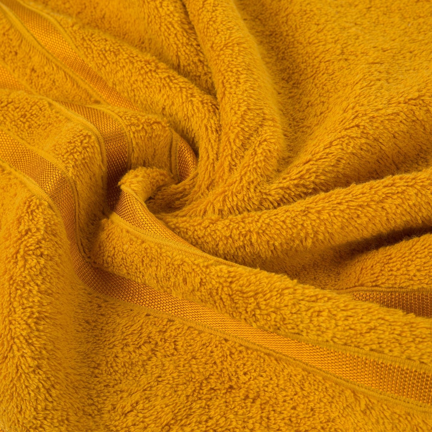 Dvieļu ar elegantu apdari ar spīdīgām svītrām platums: 70 cm, garums: 140 cm, krāsa: sinepju, svars: 500 GSM, sastāvs: Sastāvs: 100% kokvilna; 100% poliesters