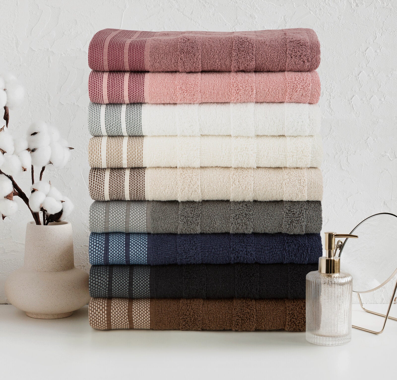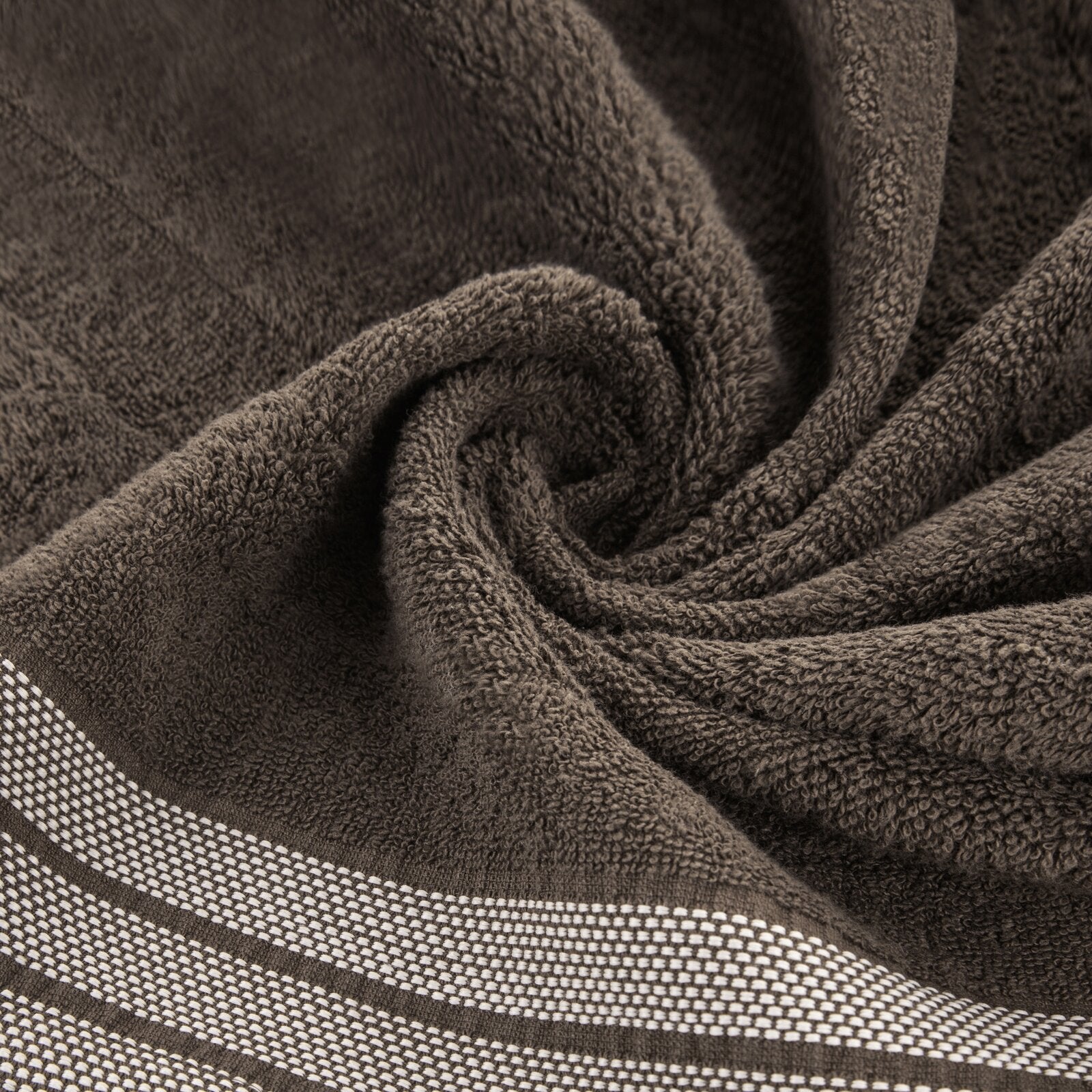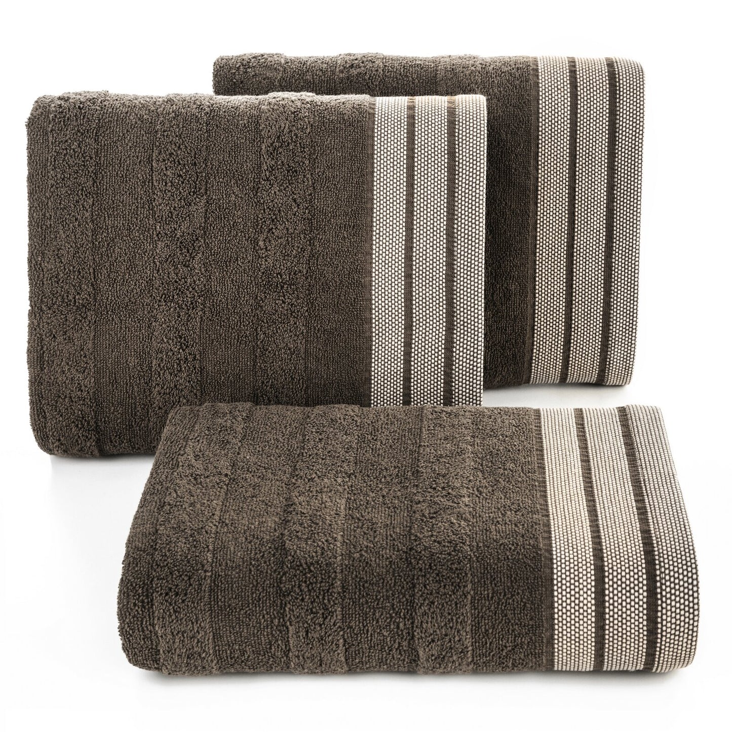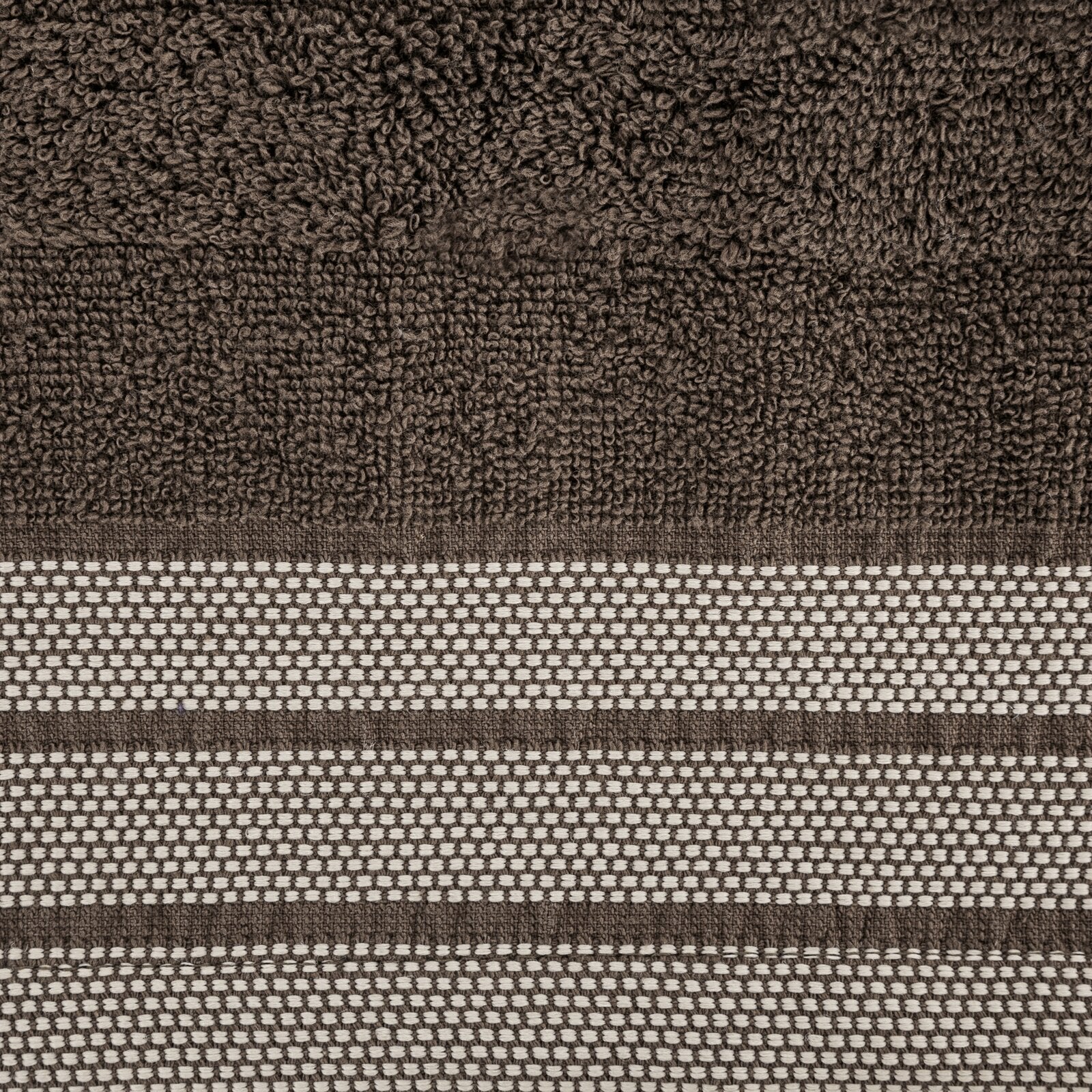 Dvieļa ar dekoratīvu žakarda apdari platums: 70 cm, garums: 140 cm, krāsa: brūna, svars: 500 GSM, sastāvs: Sastāvs: 100% kokvilna; 95% kokvilna, 5% poliesteris