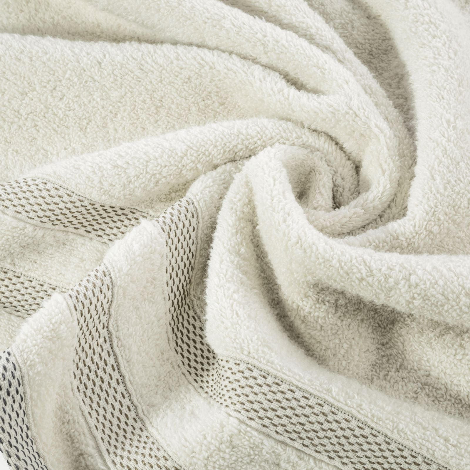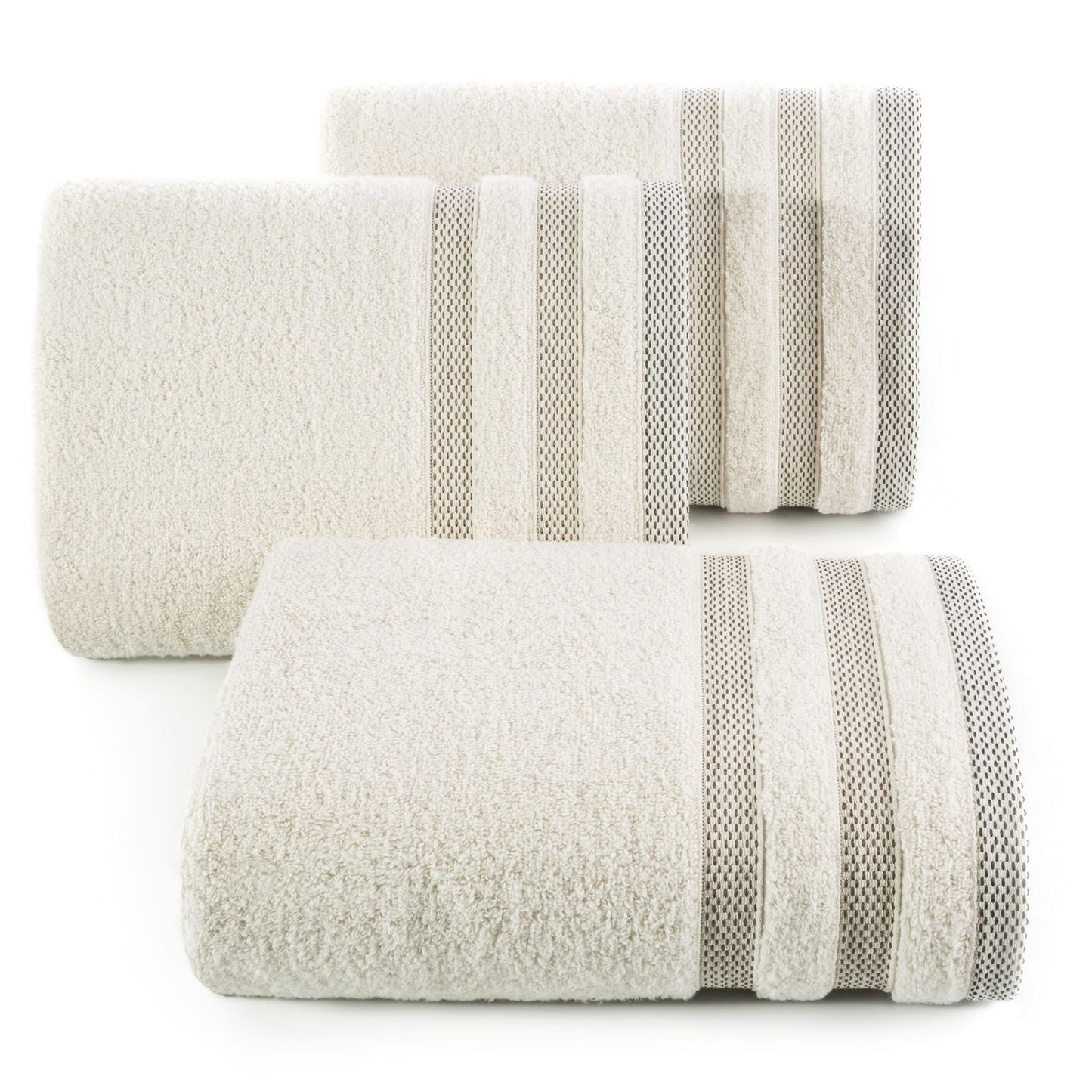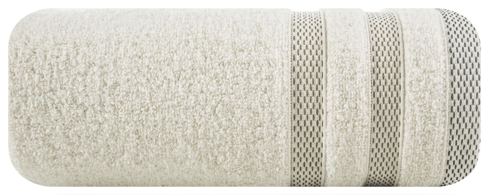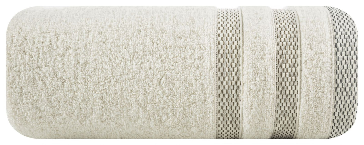 Pūkains un uzsūcošs kokvilnas frotē vannas dvielis ar klasisku raksturu, ko rotā eleganta svītraina apmale ar spīdīgiem diegiem. Viegli mazgājams. Platums: 70 cm, garums: 140 cm, krāsa: bēša, svars: 400 GSM, sastāvs: Sastāvs: 100% kokvilna; 50% kokvilna, 50% poliesters
